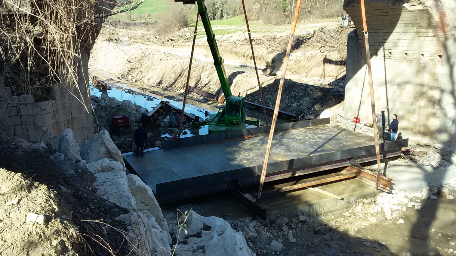 Il ponte in ferro, della lunghezza di 16 metri, è infatti un’opera provvisoria, cioè destinata a fronte all’emergenza post-alluvionale, in attesa dell’assegnazione di risorse finanziarie adeguate alla ricostruzione totale del manufatto.