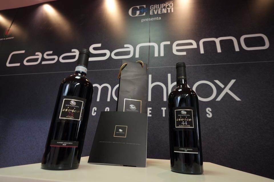 Ad accompagnare le cene e i buffet offerti agli ospiti del teatro Ariston, ci saranno un bianco e un rosso. Come bianco, i giovani manager dell’azienda, hanno scelto l’Asprinio (etichetta Civico 44). È un vino bianco dal sapore intenso, che offre un ventaglio di sentori fruttati e floreali, prodotto dalle uve della classica alberata.
