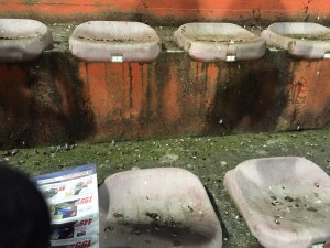 “Non è cosa entusiasmante neppure per il più stoico dei tifosi, è ormai consuetudine che i supporters della squadra giallorossa trovino (da più di un mese a questa parte) il settore laterale della Curva Sud completamente imbrattato da un fitto strato di escrementi di volatili. Ed è esattamente dall’inizio dell’anno che sia gli spalti che le poltroncine (alcune delle quali assegnate come posto a degli abbonati) sono sempre ricoperti da un fitto strato di deiezioni di uccelli- denuncia Vevoto- che li rende totalmente inutilizzabili; a meno che qualche volenteroso non provveda autonomamente a pulire il proprio posto a sedere! Purtroppo, il fatto che questa situazione vada avanti da circa un mese lascia letteralmente basiti perchè fa pensare che parte dell’impianto (se non l’intera struttura!) sia in completo abbandono e non mantenuto in efficienza, dato che non viene assicurata neanche una ben che minima opera di pulizia ordinaria degli spalti.”