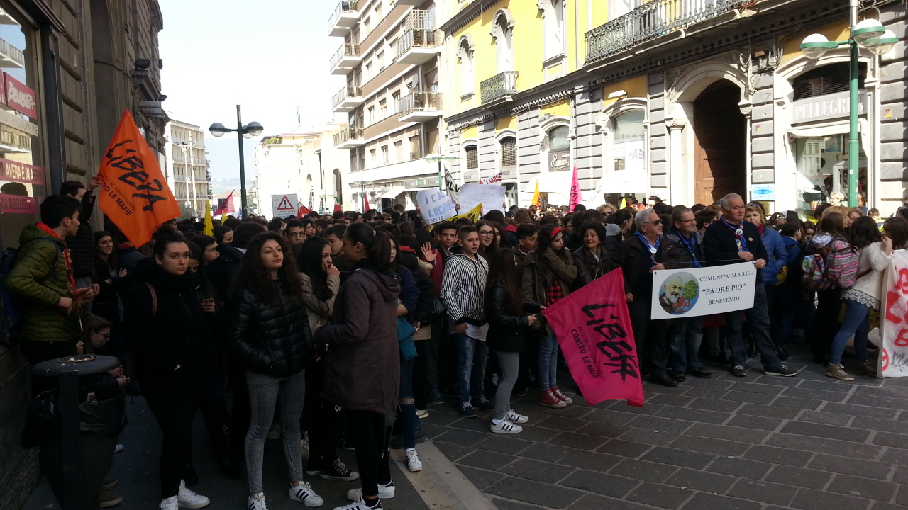 Un folto corteo ha salutato anche a Benevento la manifestazione organizzata da Libera “Ponti di memoria, luoghi di impegno” che in tutta Italia ha celebrato l’ingresso della primavera, una primavera di rinascita e di coscienza contro tutte le mafie e nella memoria di tutti coloro i quali furono vittime innocenti della criminalità organizzata. Da Piazza Orsini a Piazza Castello finalmente una dimostrazione partecipata di popolo, di ragazzi, di gente comune che ha avvertito l’esigenza di esserci e di testimoniare che un altro modo di vivere è possibile e che la piaga delle organizzazioni malavitose, sotto qualsiasi denominazione, non prevarrà. Neppure a Benevento, città che non soffre della pervasività del fenomeno ma dove la malavita organizzata e non esiste ed è potenzialmente letale.