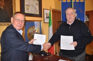 A firmare l’atto sono stati: il Cav. Uff. Serafino Maglieri, rappresentante della Benevento Flood Relief Committee, e il dott. Claudio Ricci Presidente della Provincia di Benevento.