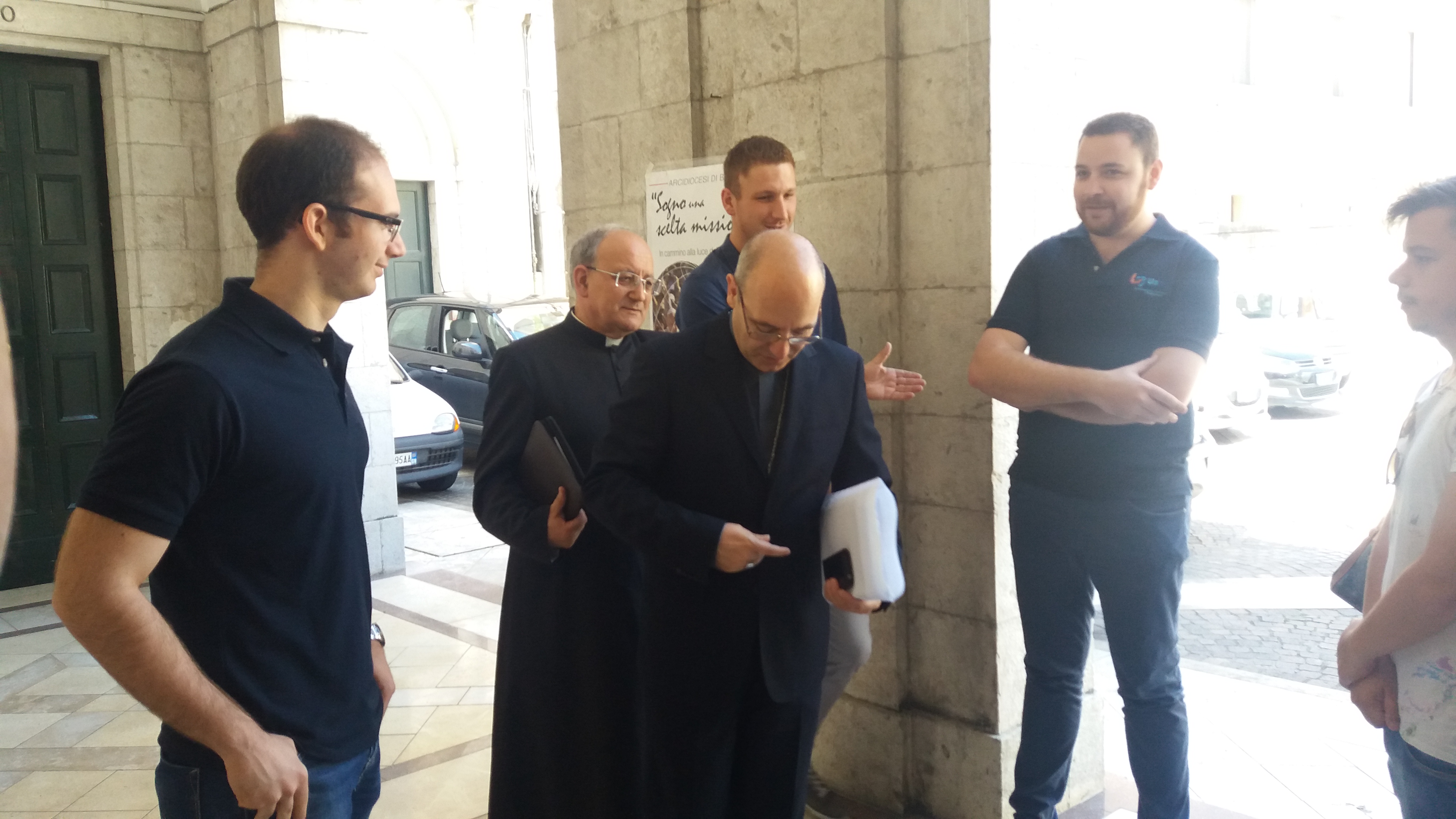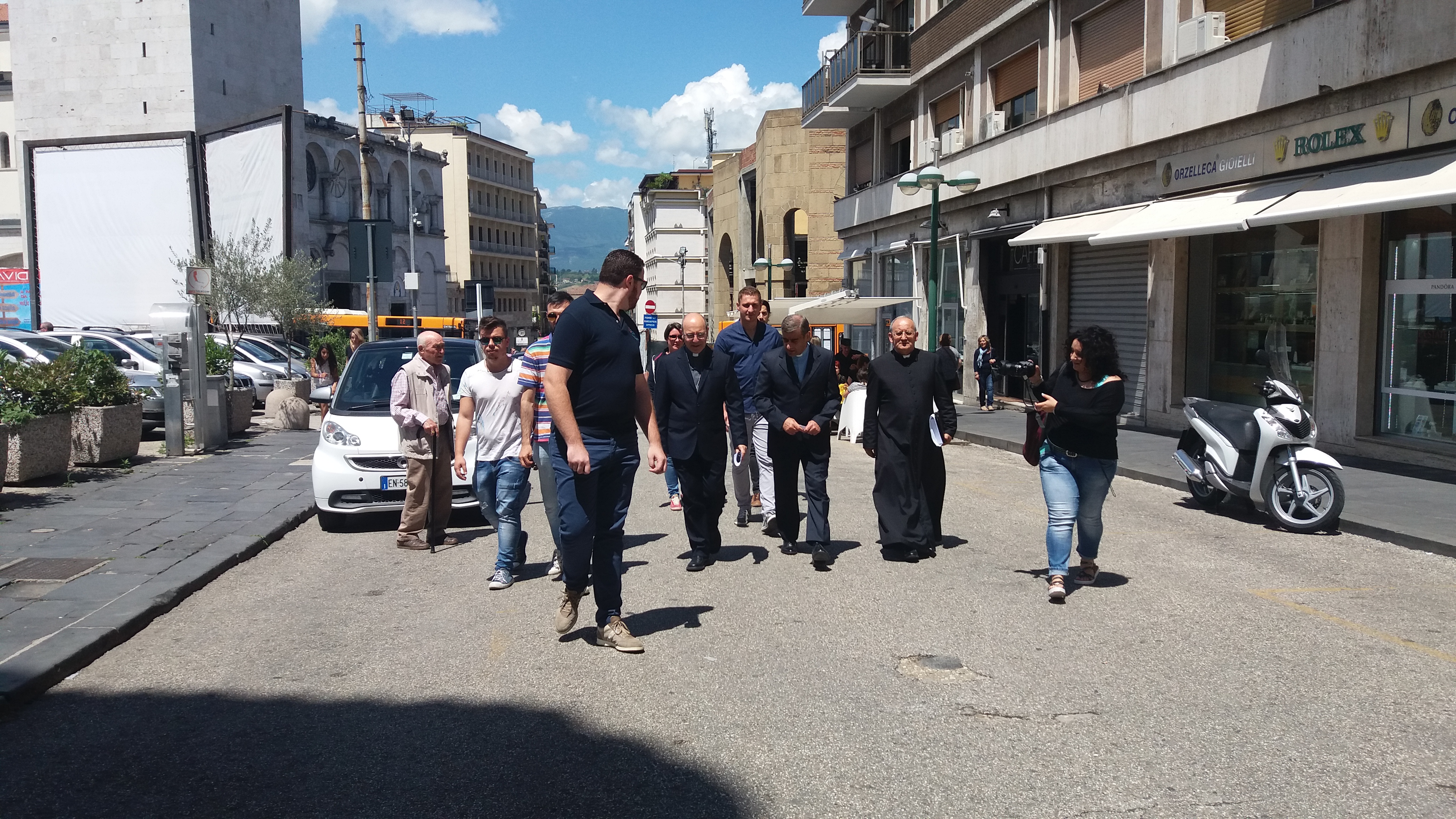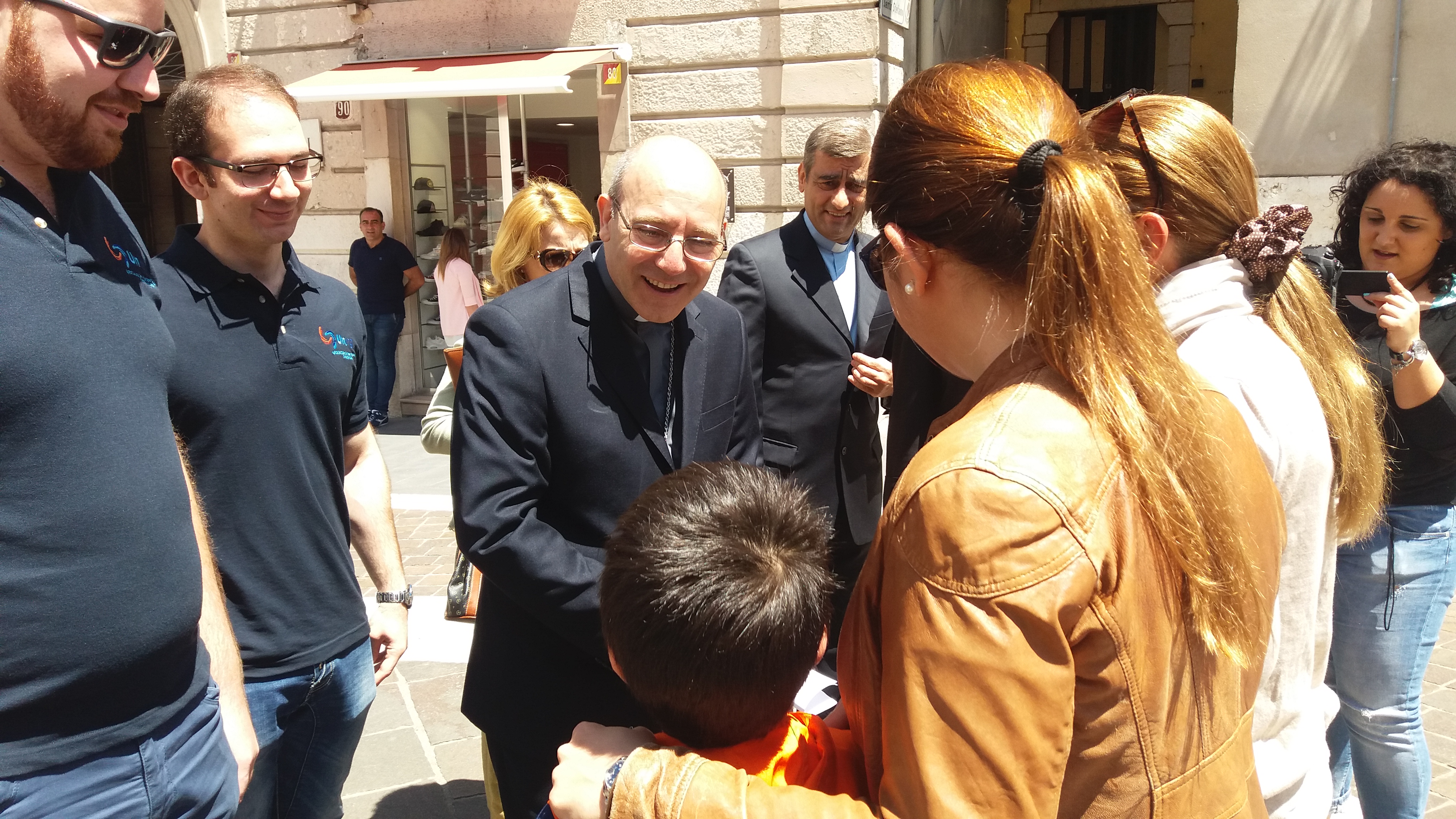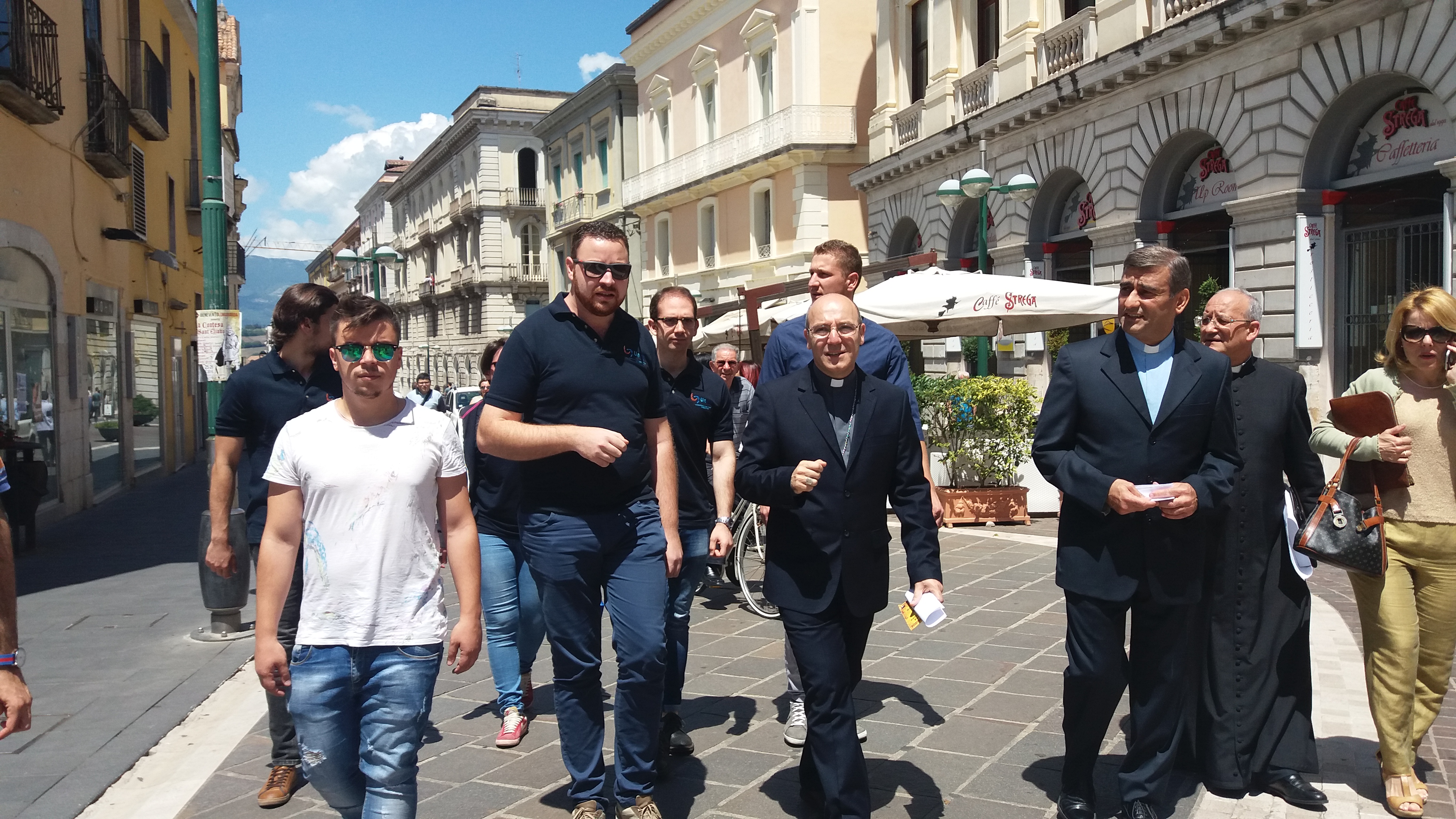 BENEVENTO- L’Arcivescovo Felice Accrocca continua il suo tour per la città. Questa mattina la tappa all’Unisannio, nella sede del Rettorato di piazza Guerrazzi. Partenza dal palazzo Arcivescovile dove Sua eccellenza ha incontro i giovani universitari, qualche chiacchiera e foto di rito, poi via verso il salotto della città , una passeggiata tra giovani e cittadini. Accompagnato dal Vicario Pompilio Cristino, dal cappellano delle Università don Paolo Scarafoni, e da alcuni membri della Commissione della Pastorale Universitaria diocesana, il vescovo si è intrattenuto con bambini e adulti per sorrisi e saluti lungo il corso Garibaldi. Seconda tappa della mattinata, Palazzo San Domenico sede universitaria dell’Unisannio. Qui Accrocca ha incontrato docenti studenti e il rettore De Rossi per discutere dei problemi che attanagliano l’ateneo ,corse stradali per studenti , fondi regionali e riqualificazioni di alcune facoltà. Il vescovo parla di un investimento per l’unisannio, i “giovani- dice- non devono lasciare questa terra meravigliosa, bisogna intervenire e subito”.