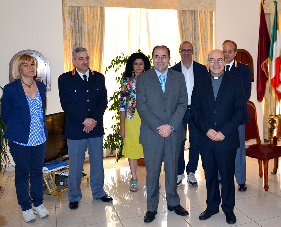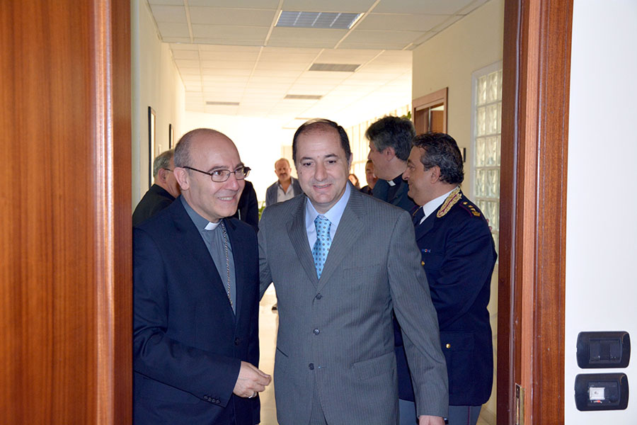 BENEVENTO – Nuovo tour in giro per città per il nuovo Arcivescovo della Diocesi di Benevento S.E. Mons. Felice Accrocca. A pochi giorni dal suo insediamento, Sua Eccellenza, accompagnato dal Vicario Don Pompilio Cristino, ha onorato con la sua presenza i locali della questura. Ricevuto dal Questore dr. Antonio Borrelli si è incontrato con i Funzionari della Questura. A conclusione della visita il Questore ha donato all’Arcivescovo una targa in ricordo della visita odierna.