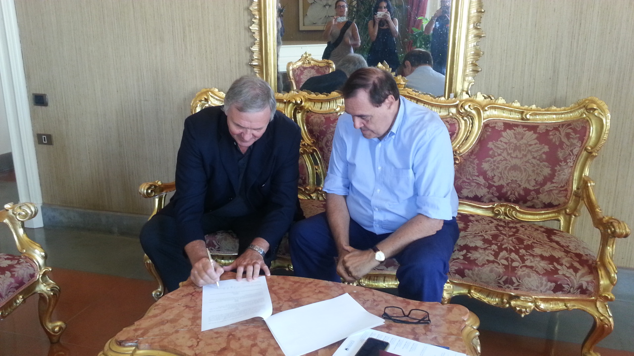 BENEVENTO- Incontro a Palazzo Mosti tra il Rettore Magnifico dell’Università del Sannio Filippo De Rossi e il sindaco Mastella. De Rossi è stato ricevuto nello studio del sindaco dove insieme a Primo Cittadino è stato siglato un protocollo d’intesa per rinsaldare ancora di più il connubio tra l’ateneo e il comune.20160829_123036