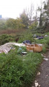 L’area, quasi completamente di competenza comunale, è stata invasa da rifiuti di vario genere.