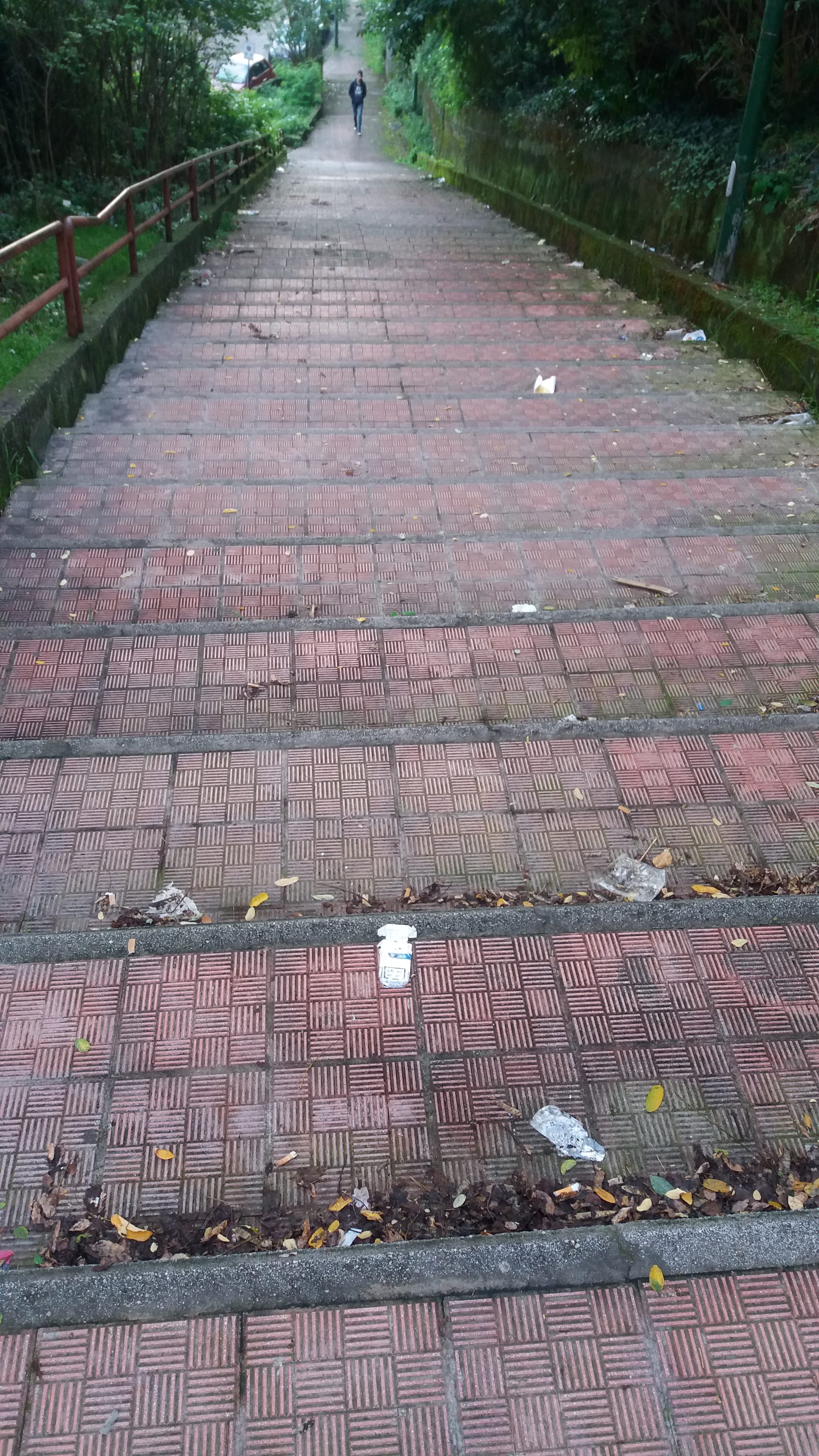 20161005_074737BENEVENTO – Continua il nostro viaggio alla volta del degrado della città. Dopo il servizio realizzato all’interno di un pullman dell’Eavbus è la volta della scaletta che collega via Sandro Pertini a via Pietro Collevaccio. Una scalinata insidiosa e che nasconde rifiuti e vegetazione. Spazzatura di ogni genere si “rintana” tra le gradinate e nell’erba alta, a partire da cartacce, plastica, fino ad arrivare a resti di un televisore.