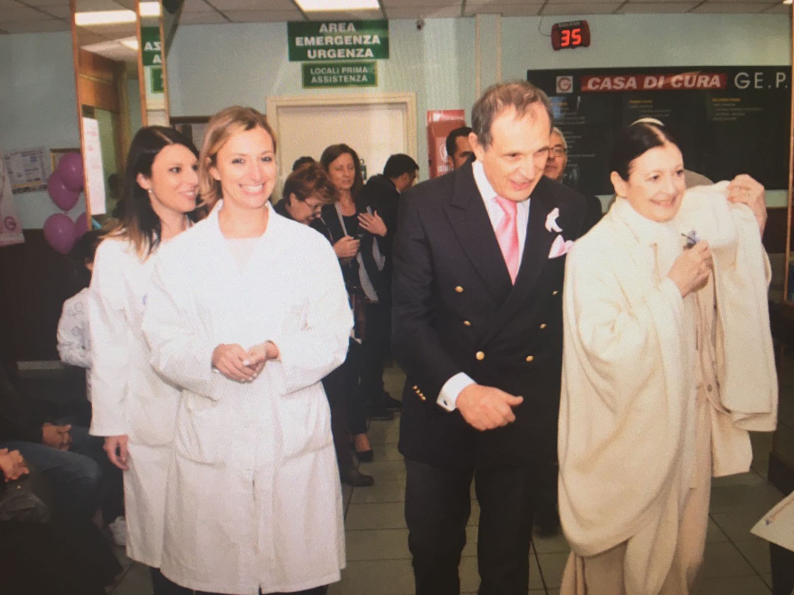 ‘Devo farvi un applauso’ – ha esordito l’étoile milanese rivolgendosi ai medici della Casa di Cura Ge.P.O.S., e ha proseguito complimentandosi per l’iniziativa in corso: ‘è questa l’Italia che apprezziamo’.