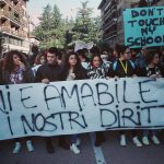 AVELLINO – In 1000 in marcia per dire no al decreto della Provincia che cambia la sede a tre Licei in città. E’ iniziata da poco la manifestazione organizzata dagli studenti del Liceo Scientifico e dell’Amabile: un corteo rumoroso e colorato sta attraversando il Corso per fermarsi poi davanti la Prefettura e sotto la sede della Provincia, in piazza Libertà. Da oggi, infatti, il “De Luca” è chiuso ed i ragazzi trasferiti al Mancini di via Scandone, i cui studenti, in base al piano definito di concerto da Provincia e Provveditorato agli Studi, sono destinati all’Amabile di via De Concilii, che a sua volta sarà accorpato con il “Giustino Fortunato” di via Morelli e Silvati. Attenzione alta anche per l’Amatucci. Un’operazione che mette in moto oltre 2mila studenti tra le proteste di docenti, dirigenti e famiglie.