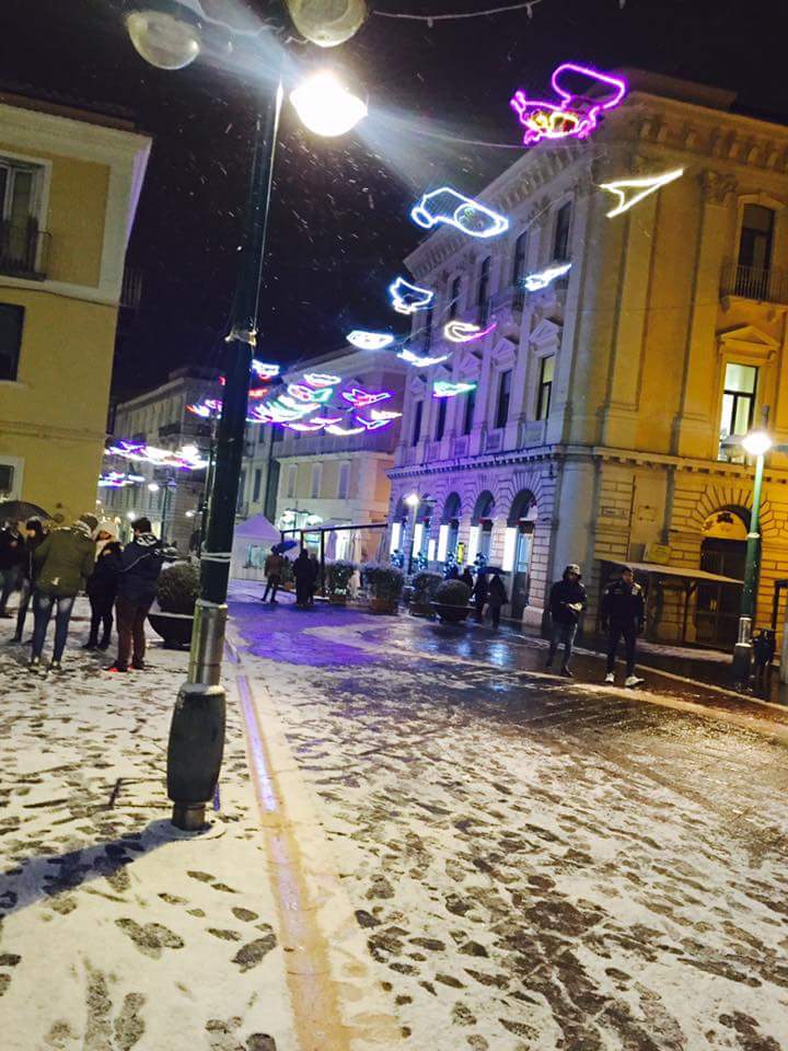 Benevento suggestiva con i fiocchi di neve. Qualche scatto che immortala la citta’ e i suoi monumenti, il salotto e la sua magia con la suggestiva Santa Sofia. Nel pomeriggio la neve ha imbiancato il capoluogo. Ora resta il rischio ghiaccio sulle strade per la notte in special modo le periferie dove, lo spargisale del Comune non ha fatto tappa. Dunque armatevi di gomme termiche e catene a bordo altrimenti “lo scivolo” e’ dietro l’angolo.