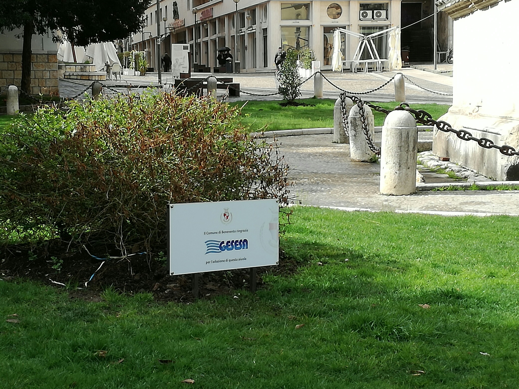 Stamane sono stati posti i cartelli simbolo dell’adozione delle aiuole: nell’area a verde dell’Arco di Traiano e nell’ aiuola di Via Napoli, dove GESESA ha restaurato nel 2014, in collaborazione con il Comune di Benevento, un’antica vasca fognaria in cui confluiscono le acque reflue della zona.