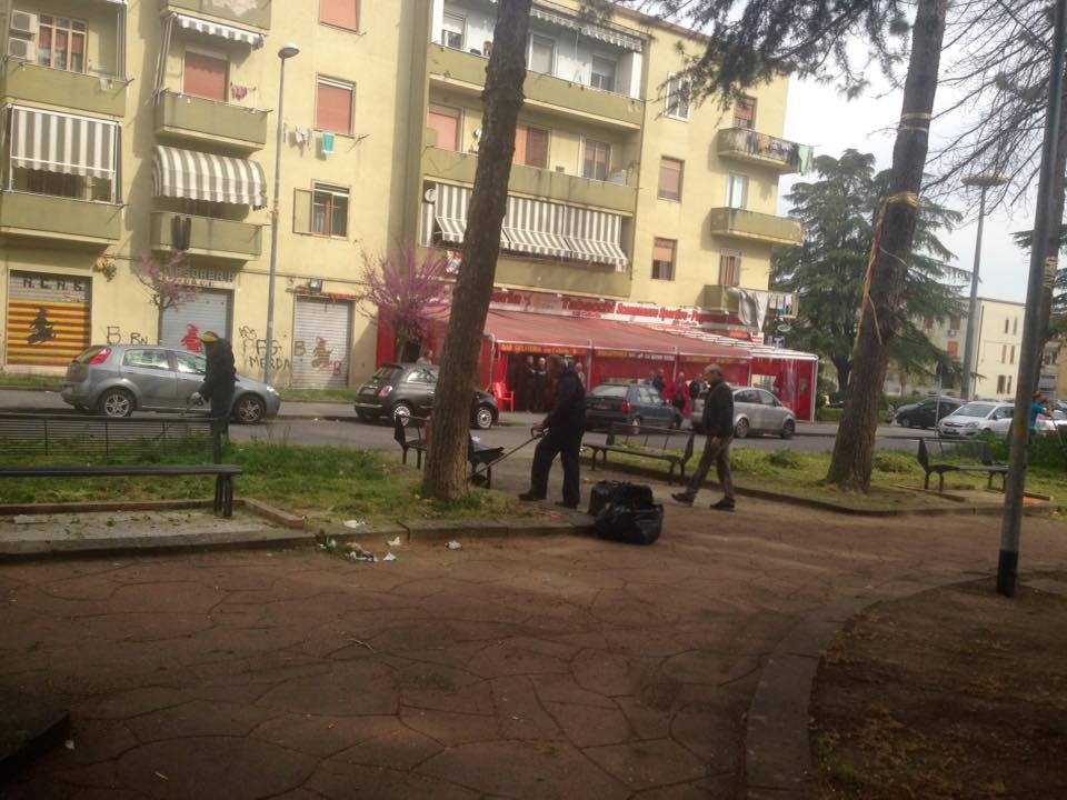 17499153_1271016186317135_1101028103578618701_n“Noi siamo qui… è il Sindaco Mastella e la sua Giunta che mancano! Non era più tollerabile far giocare centinaia di bambini in condizioni ambientali di degrado e abbandono. Piazza S. Modesto è frequentata da centinaia di persone e non potevamo più consentire una condizione del genere. Per questi motivi l’Associazione IO X Benevento, il Comitato di Quartiere del rione Libertà “Democrazia – Legalità – Libertà”, i tifosi del club Shangai, la Cooperativa Sannio Ecologica e il Tabacchino Bar Fratelli Collarile, hanno deciso di promuovere una giornata ecologica per ripulire Piazza S. Modesto.