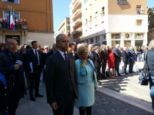 Labari e gonfaloni e marce militari per festeggiare l’anniversario. La consueta premiazione dei più meritevoli e il ricordo di coloro che hanno sacrificato la vita nell’esercizio del proprio dovere a coronamento della mattinata ai piedi dell’Arco. Il Vicecapo della Polizia Piantedosi