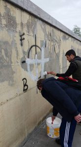 “Dopo aver vestito i panni delle vittime sacrificali I “provinciali” di Forza nuova imbrattano la cittá da giorni con I loro ridicoli manifesti e croci celtiche che sono una chiara apologia di fascismo. In questo caso peró tutti tacciono. Tace il sindaco Clemente Mastella che dovrebbe far cancellare quelle scritte in rispetto alla costituzione repubblicana. Ma è evidente che il signor Sindaco veste i panni del democratico solo quando c’è da attaccareiI movimenti della cittá e fraternizzare con le organizzazioni xenofobe. Tacciono i giornalisti dallo scoop facile pronti ad inneggiare alla caccia alle streghe se vengono affissi manifesti sulle morti di stato, ma che poi chiudono gli occhi dinanzi all’apologia di fascismo. In questo momento alla luce del sole stiamo andando a coprire le scritte e I manifesti xenofobi fatte da quattro gatti da fuori Benevento, di nascosto, di notte. L’antifascismo non ha paura e non agisce di notte, agisce alla luce del sole spazzando senza paura la barbarie, l’odio razziale, religioso, di genere ricordando a tutti che la nostra costituzione non garantisce libertà di espressione a chi pone alla base del proprio agire politico la negazione di ogni libertà”.