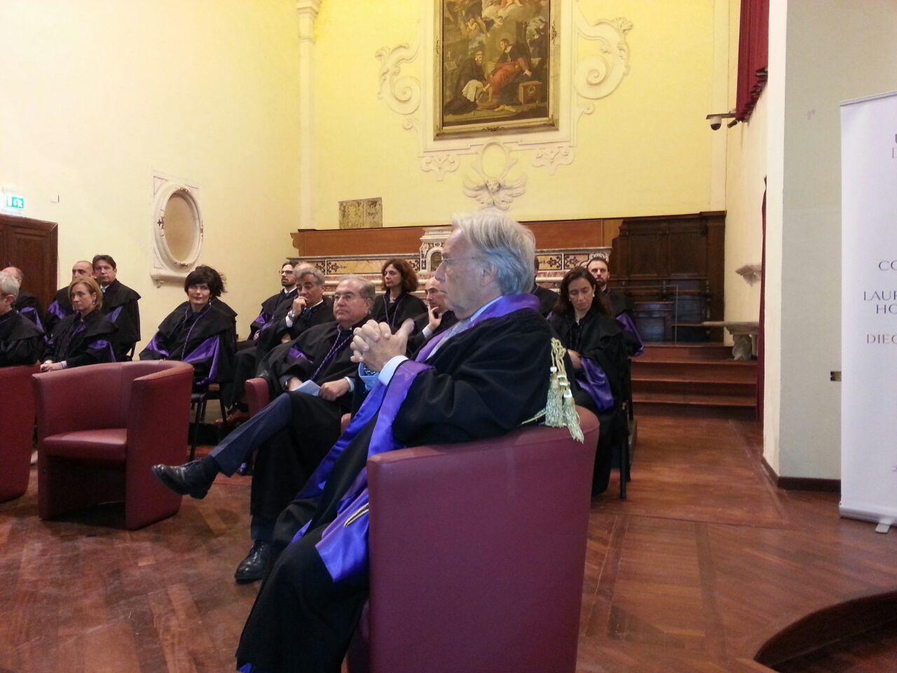 Diego Della Valle è dottore in Economia e Management. Ad insignirlo del titolo honoris causa l’università del Sannio presso l’auditorium di Sant’Agostino dove ad attendere l’industriale tosco-marchigiano ed il fratello Andrea, patron della Fiorentina c’era il senato accademico e il Rettore De Rossi che ha salutato con orgoglio il conferimento della laurea a Mister Tod’s. Un imprenditore di successo capace di varcare i confini nazionali con le sue grandi marche, un uomo in grado di reintrodurre sul territorio di appartenenza una vasta fetta del suo agire attraverso atti concreti e di caratura sociale ma anche protagonista di operazioni di vasta eco come l’intervento da 25 milioni di euro sul Colosseo. Della Valle incassa la laudatio dei relatori, ascolta compassato la cronistoria della sua avventura imprenditoriale, i riferimenti alla genesi dei distretti industriali di cui fu uno degli antesignani, la sua capacità di unire teoria e parassi in un mix vincente e duraturo. “Chi può faccia”, dice il neolaureto, “sembra una ovvietà ma oggi anche le cose normali hanno il sapore della straordinarietà”, dice Della Valle dall’ambone dell’auditorium.