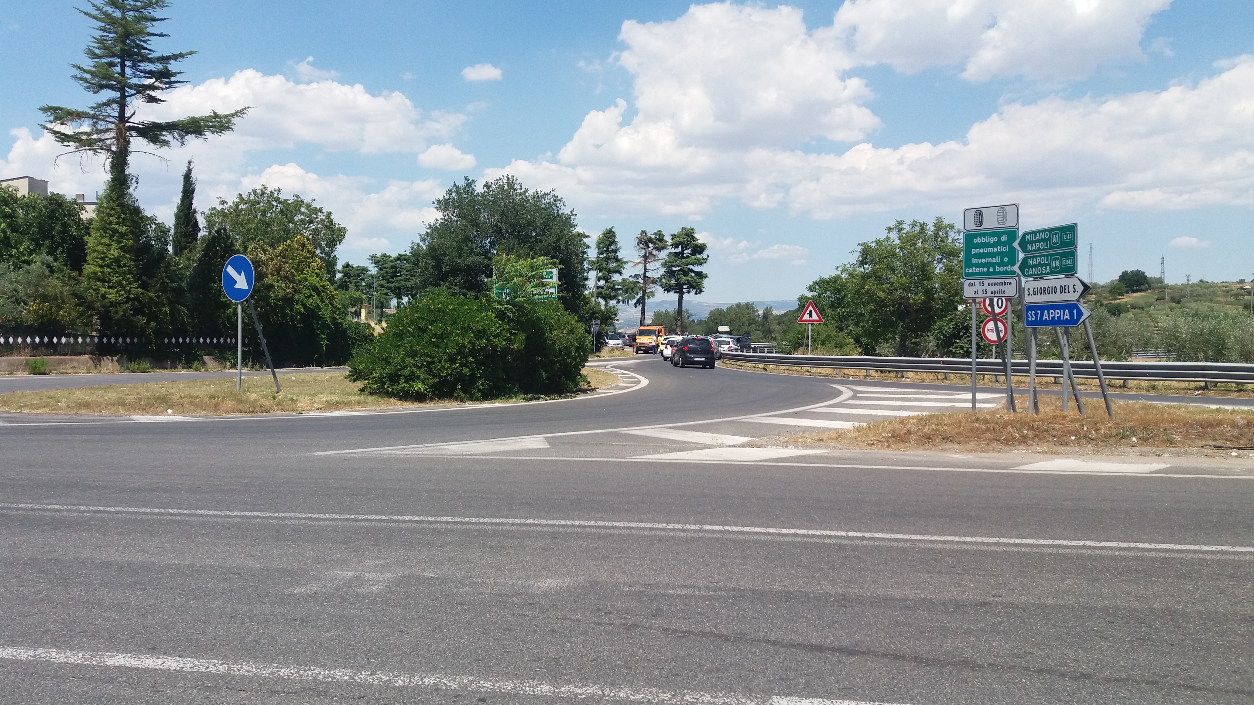Caos e disagi per il passaggio della corsa in Rosa a San Giorgio del Sannio. Traffico in tilt all’uscita della tangenziale raccordo autostradale 09 di Benevento. Automobilisti alle prese con il blocco del traffico da parte dell’Anas e della Stradale, che senza un avviso e in tempi anticipati, (la corsa e’ passata alle 14 30) ha costretto uomini, donne incinte e bambini a restare sotto un sole cocente di luglio e attendere il giro proveniente da Isernia.