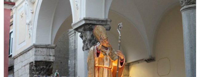 Poi a seguire la processione con la statua del Santo. Questo il percorso: via Roma, chiesa di Santa Maria di Costantinopoli, piazza Trieste, viale Vittorio Emanuele III, piazza Castello, via Caudina e poi ritorno in duomo per via Roma.