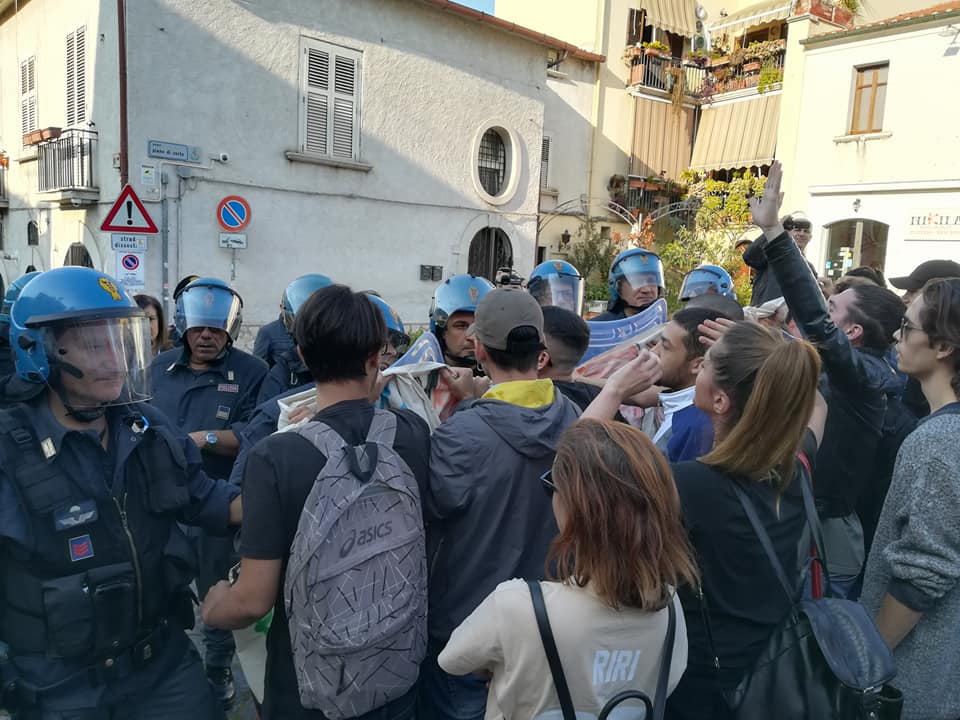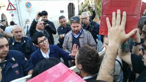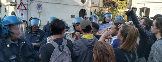 L’arrivo del Ministro all’Istruzione Valeria Fedeli al Sant’Agostino di Benevento è stato accolto con striscioni e tensione da parte del Collettivo Autonomo Studentesco. Un gruppi di giovani del Cas è stato bloccato dal cordone delle forze dell’ordine in piazza Vari. Qualche attimo di apprensione poi la richiesta di incontro con il Ministro per partecuaprae al convegno indetto dala Cgil di Benevento.E proprio a sedare gli animi il segretario della Cgil sannita, Rosita Galdiero.