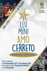 “Le Domeniche dell’olio”, dal 5 al 26 novembre in Piazza San Martino “Presepiarte” dall’8 dicembre al 6 gennaio 2018 e”La Casa di Babbo Natale” dal 2 dicembre al 7 gennaio. “Tutti gli eventi sono volti alla promozione del territorio,alle eccellenze che questo comune esprime attraverso l’arte della ceramica, e attraverso la bontà di uno dei prodotti più preziosi della tavola, l’olio d’oliva.Abbiamo voluto rendere ancora più suggestive le nostre chiese,con delle proiezioni di luce, mentre per i più piccoli è stato pensato un evento dedicato alla magia del Natale, il mondo fiabesco e incantato di Babbo Natale… tra favole,giochi e musica. Credo che la gente meriti a Natale più che mai un momento legato al sogno, alla leggerezza, da vivere in famiglia e con la comunità di Cerreto”. Ha affermato il sindaco Giovanni Parente.
