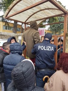 Protesta questa mattina del Movimento lotta per la casa dinanzi ai servizi sociali del comune di Benevento.”Basta occupazioni abusive assegnare le case a chi ne ha diritto e a chi vive nelle scuole. Subito un osservatorio per la casa”. Questo lo slogan degli attivisti. Si attende sotto una pioggia battente un incontro con il Dirigente Castracane per protocollare un accordo con il movimento il Sunia e la Cisl. 52 gli alloggi che verranno costruiti al rione Capodimonte ma il provvedimento non dovrebbe riguardare chi vive nelle scuole e chi lotta da tempo per ottenere un alloggio. Momenti di apprensione tra le forze dell’ordine e il movimento a causa della chiusura dei cancelli. L’incontro è avvenuto con l’assessore Maio la quale ha sostenuto che da parte dell’amministrazione c’e la disponibilità ad aiutare le famiglie che ad oggi vivono dopo tre anni nelle scuole. Al centro dell’incontro la delibera oggi in discussione durante la giunta di Palazzo Mosti,  per il bando di assegnazione degli alloggi popolari. Un documento che secondo il Movimento lotta per la casa e i sindacati Sunia e Sicet non permetterebbe l’accesso in graduatoria delle famiglie ancora ospitate all’interno di due scuole della città di Benevento Ponticelli e San modesto al Rione Liberà.