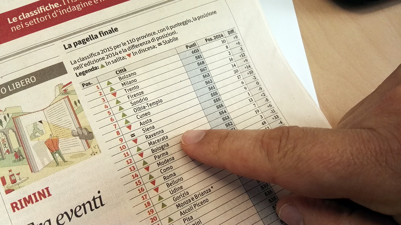 E’ Belluno la capitale del buon vivere. Ancora una volta, l’Italia è divisa in due dai numeri nella classifica della Qualità della vita de “Il Sole 24 Ore”. In coda c’è Caserta ma, purtroppo, le ultime posizioni sono quasi tutte appannaggio di città campane che perdono punti rispetto al 2016. In Campania la “migliore”, si fa per dire, è Benevento, che si piazza al 95° posto con 408 punti. L’anno scorso era 86esima, dunque ha perso 9 posizioni. Al 102esimo posto troviamo Avellino con 401 punti, l’anno scorso era 93esima e, dunque, anche il capoluogo irpino perde 9 posizioni.
