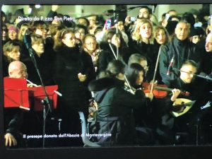 Una giornata davvero suggestiva questa del 7 dicembre per la tradizione natalizia.Il presepe di Montevergine, luogo spirituale tanto amato dagli irpini e non solo, è stato esposto in Piazza San Pietro a Roma e sarà ammirato da tanti fedeli e turisti in visita a Città del Vaticano. Una cerimonia bellissima,ha inaugurato l’opera presepiale donata dall’Abazia di Montevergine. Musica, cori, poesia, un momento prezioso che introduce il Natale come momento di condivisione e pace. Anche il Presidente della Regione Campania Vincenzo De Luca ha presenziato all’evento, per prima cosa ha salutato i bambini dei reparti di oncologia del Santo Bono di Napoli.”Il Presepe di Montevergine ha come tema la Misericordia. E’ un Presepe che parla dei valori della famiglia, dell’accoglienza della carità”. De Luca ha colto l’occasione per promuovere anche un altro progetto di grande valore culturale per la regione Campania, “I percorsi dell’anima” itinerari suggestivi che toccano i luoghi spirituali, da Montevergine, Pompei, San Gerardo, Padre Pio da Pietrelcina, San Gennaro, Madonna dell’Arco “E’ un grande onore poter esporre in Piazza San Pietro il bellissimo presepe realizzato dagli artigiani irpini. Dobbiamo dire grazie all’Abate Guariglia, che ha mediato col Vaticano, se abbiamo un’altra opportunità straordinaria per promuovere la Campania e un sito religioso importante come quello di Montevergine” ha sottolineato De Luca.La cerimonia in Piazza San Pietro ha visto poi al centro della scena un altro simbolo del Natale, il grande albero donato dalla Polonia, una grande festa per i più piccoli, un momento di condivisione e riflessione per tutti.