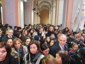 Ha preso il via l’evento “Uniamo le forze” la campagna di prevenzione promossa dalla Polizia, Regione Campania e Unisannio. La pioggia battente non ha aiutato la Polizia di Benevento che ha dovuto spostare la location dalla centralissima piazza Roma all’atrio della sede universitaria di Piazza Guerrazzi. Una location troppo piccola per racchiudere tanti bimbi e docenti che hanno preso parte alla prima dell’evento. A salire sul palco il sindaco Mastella, il Consigliere regionale Mortaruolo, il vescovo Accrocca e le diverse istituzioni del territorio. “Debellare ogni forma di violenza dialogando con le scuole e premiando i piccoli del futuro”, questo il monito del questore Bellassai.