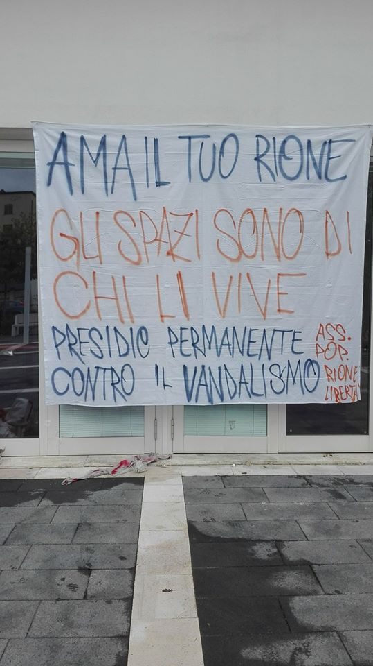 “Ama il tuo Rione. Gli spazi sono chi li vive. Presidio permanente contro il vandalismo”.Questo lo striscione che campeggia all’esterno dell”Auditorium Spina verde del Rione libertà. Continua dunque la lotta di Assemblea popolare sugli spazi da affidare alla città. Nonostante la nota stampa serale dell’assessore al patrimonio del comune di Benevento Maria Carmela Serluca che ha annunciato la consegna delle chiavi degli spazi vandalizzati e ripuliti da AP, nelle mani del Conservatorio già dalla prossima settimana, i giovani di Asemblea Popolare pongono ancora una volta l’attenzione sul tema del degrado e l’abbandono invitando le istituzioni a riflettere su un chiaro messaggio: “quella di vivere gli spazi”. L’assessore Serluca che chiama in causa ritardi e negligenze della passata amministrazioen, a guida Pepe, ha anche dichiarato che è stato dato mandato ai vigili Urbani della città di perseguire chiunque si renda autore di atti di vandalismo o di occupazione dell’immobile già devastato. Gli attivisti di Ap battono dunque sulla questione politica dell’affidamento degli spazi. Ribadiscono il principio dela cittadinanza attiva cosi come sostiene Alessandro Tucci di Assemblea popolare.