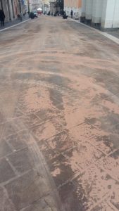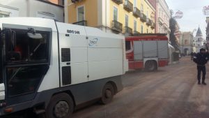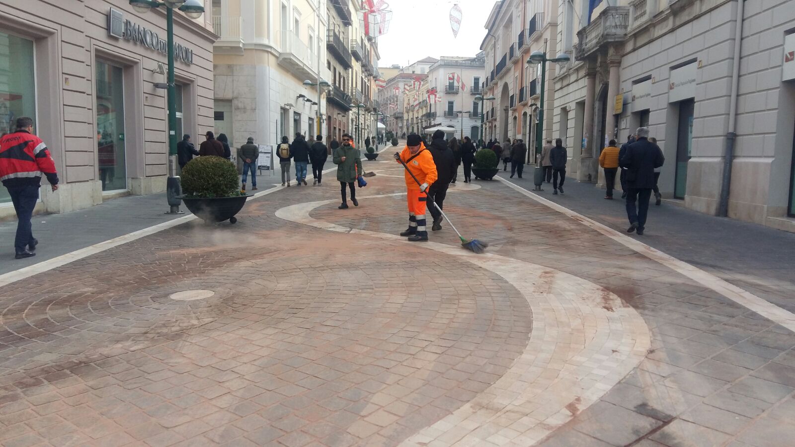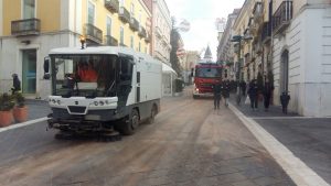 Singolare incidente questa mattina al Corso Garibaldi di Benevento. Una macchina spazzatrice dell’Asia ha perso olio ed ha imbrattato in lungo e in largo, vicoletti compresi, il centro cittadino.Una domenica oleata per i tanti beneventani a passeggio e una brutta sorpresa per il turista di turno, che si è trovato su una sorta di campo di battaglia.Una nube (si spera non tossica) si è sollevata in seguito allo spargimento di una polvere utilizzata per assorbire la macchia d’olio,personale dell’Asia e Vigili del Fuoco (intervenuti per un’altra emergenza) hanno completato lo scenario quasi apocalittico del Corso Garibaldi. Una domenica di fermento e paura di qualche mamma a spasso con il passeggino, preoccupata per l’aria resa irrespirabile nella zona contaminata.Un incidente di cui il trasportatore del mezzo dell’Asia non si era accorto, se non a fine lavoro. Ora è tutto sotto controllo… anche se per ripulire la strada (fatta da una particolare pavimentazione a mosaico) non sarà semplicissimo.
