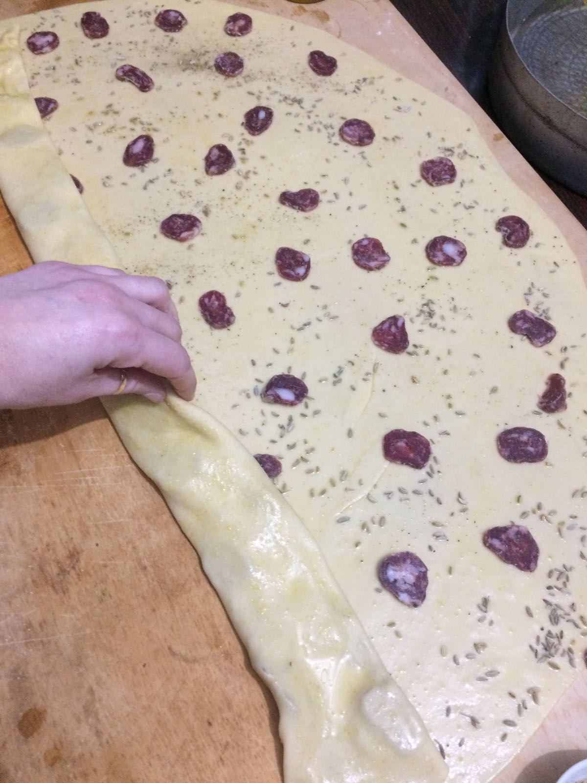 Ci sono sapori che impari a conoscere da bambino, e conservi preziosamente perchè hanno rappresentato i momenti di festa che univano ancora diverse generazioni. Tra i prodotti della tradizione contadina, probabilmente poco conosciuta è ” La pizza sfogliata” di Reino in provincia di Benevento. Una pizza non lievitata, realizzata dal semplice impasto di farina, acqua e sale, sugna (oggi sostituita dall’olio d’oliva) uova. Una sfoglia che viene poi farcita con salsiccia, finocchietto e pepe. Un sapore particolarissimo dato proprio dall’imperfezione della cottura, internamente soffice e fuori croccante.Nel passato questa focaccia veniva cotta sotto la cenere del camino, oggi la si può preparare comodamente nel forno della nostra cucina…ma la poesia viene un pochino a mancare. Accompagnata da un buon vino, meglio se rosso, la pizza sfogliata faceva parte dei prodotti tipici del Carnevale. Non esiste una ricetta scritta, ma unicamente tramandata nella pratica da nonna a nipote.Una tradizione che certamente deve continuare e che resta comunque sconosciuta ai più, rimanendo un “prodotto di nicchia” che a Reino è forse giunto dagli abruzzesi durante la transumanza sul Regio Tratturo. Un prodotto della civiltà contadina e pastorale che conserva ancora oggi tutto il sapore di un tempo, a patto che sia realizzato con ingredienti genuini e del territorio, frangrante e profumata la pizza sfogliata di Reino è certamente da preparare, assaggiare e condividere!