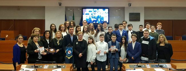 Le classi II A e II B della scuola secondaria di primo grado di Aiello del Sabato sono state protagoniste della seduta odierna di “Ragazzi in Aula 2017/18” alla quale ha preso parte la presidente del Consiglio regionale Rosetta D’Amelio. Gli alunni dell’istituto, accompagnati dalle docenti e dal vicesindaco Sebastiano Gaeta, hanno presentato e votato nell’Aula “Giancarlo Siani” una proposta di legge per la creazione di uno “Sportello di ascolto per la promozione del benessere scolastico e la prevenzione del disagio sociale”.