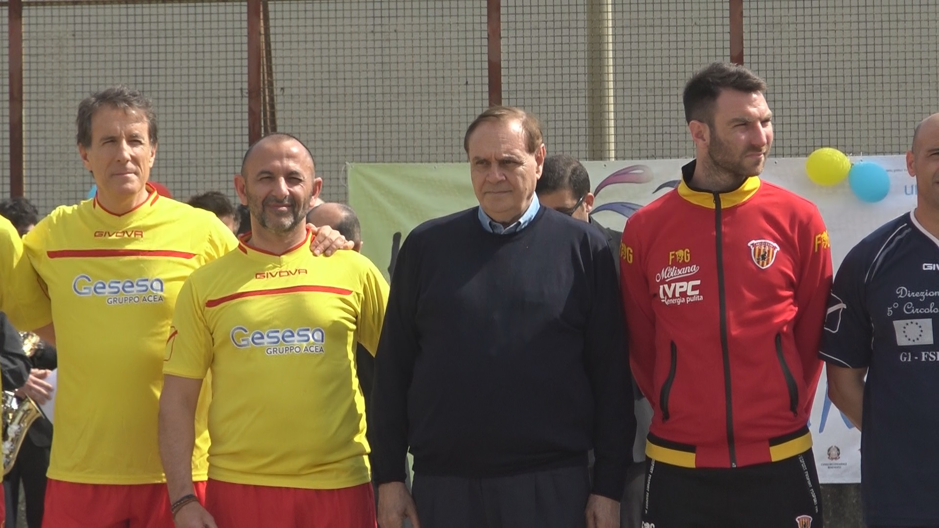 Tra le fila dei dipendenti Gesesa anche il questore di Benevento, Giuseppe Bellassai, per un confronto che all’esterno sembrerebbe esser del tutto antitetico, ma su un terreno di gioco con il calcio viatico che condensa proprio il significato dell’evento: “Ho aderito volentieri – ha spiegato – perché dimostra lo spirito dimostrato per dare la possibilità di socializzazione a chi risiede nella casa circondariale della città”. L’ingresso in campo è stato accompagnato dall’Inno di Mameli eseguito dalla Banda del conservatorio sannita. Al fischio per il calcio d’inizio insieme al sindaco anche il capitano del Benevento Calcio a rappresentanza della squadra giallorossa anche quest’anno presente all’evento: “Rispondiamo sempre presente con molto entusiasmo, – ha detto Fabio Lucioni – perché possiamo dare il nostro contributo affinché con questo sport si possano mettere in scena partite importanti su un campo insolito, ma dense di significato”. Il match è terminato con il risultato di 2-1 a favore dei detenuti, al termine del quale c’è stata la consegna delle medaglie a tutti i partecipanti.