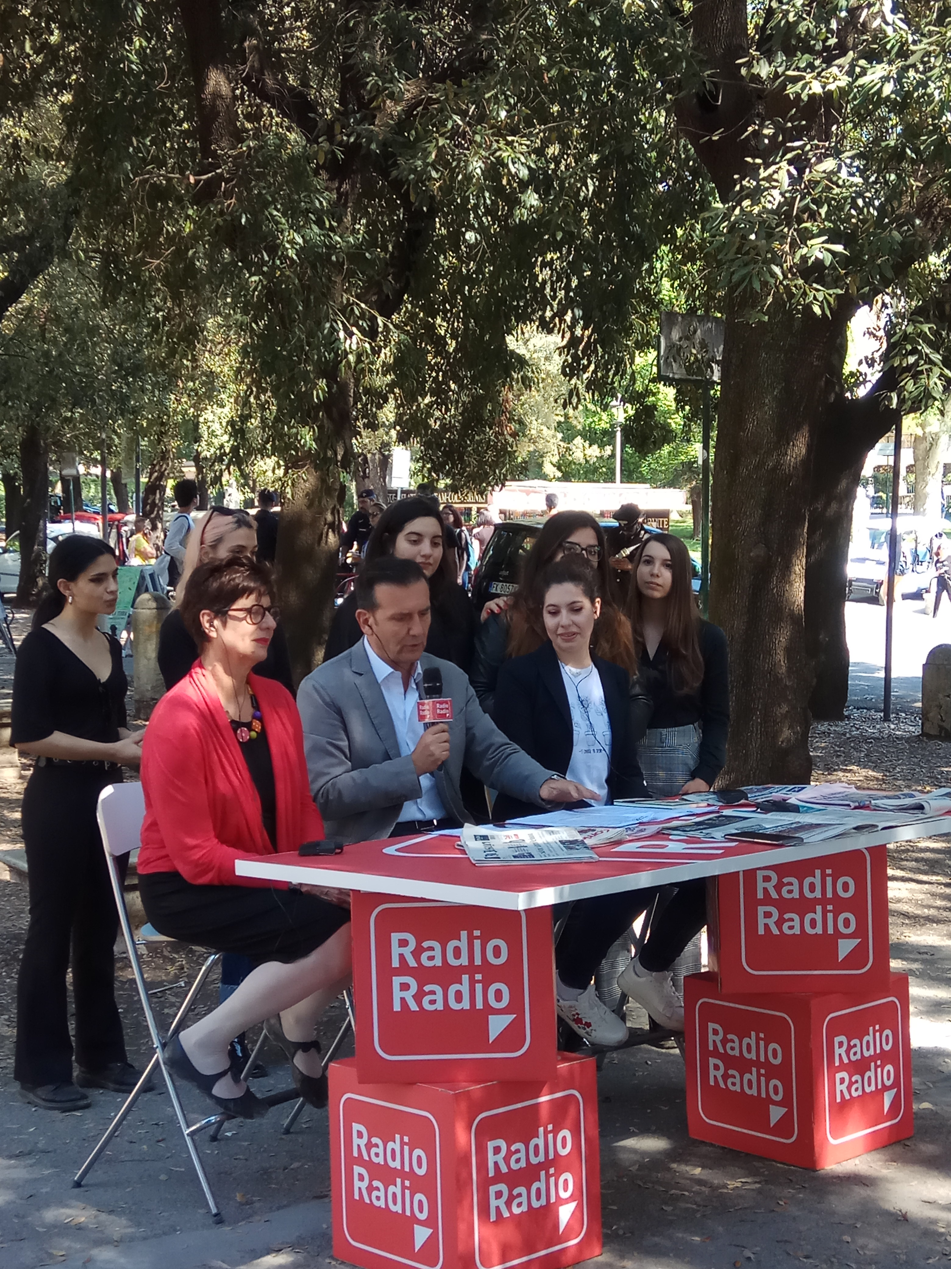 Sicuramente molto suggestiva e coinvolgente è stata la lettura del racconto di Sabina Carrozzini, allieva del Liceo Classico Pietro Giannone, Una bicicletta rossa, classificatosi secondo al Premio scriviamoci 2017. L’attrice Veronica Rivolta, con una lettura magistrale e profondamente evocativa, ha trasportato gli spettatori nel mondo di Toni, fatto di una tale dedizione al lavoro da giungere alla totale alienazione, e di un ragazzino “dai capelli rossi che ricordavano un fungo e con il naso coperto di efelidi”, che ha avuto il coraggio di riconvertire una fabbrica di eternit in azienda per compostaggio biologico. L’incontro si è concluso con l’intervento di Sabina, che ha spiegato esaustivamente il significato del suo racconto, evidenziandone il messaggio di speranza e di fiducia nelle nuove generazioni. Infine ai microfoni di Radio Radio ha augurato a tutti i ragazzi, e in particolare agli allievi e alle allieve del suo Liceo, di trovare “una bicicletta rossa” che li possa portare lontano e realizzare i propri sogni.