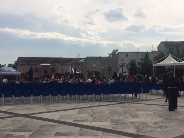 Pietrelcina abbraccia i fedeli di San Pio, accorsi numerosi per celebrare l’anniversario della nascita del Frate con le stimmate. 131 anni fa nel comune sannita nacque Francesco Forgione, oggi il Santo tanto amato da migliaia di fedeli. La manifestazione religiosa si è snodata in più momenti, che hanno portato alla cerimonia solenne con la Celebrazione Eucaristica che si è tenuta presso il Parco Colasanti, gremito di gente venuta da ogni regione d’Italia. Si è tenuta l’accensione della lampada votiva offerta dalla Città di Campobasso con il sindaco Antonio Battista. “Pietrelcina è la città di tutti, noi siamo umili servitori. Speriamo che oggi nel giorno della nascita di San Pio, nascano nuove speranze per questo territorio ” ha affermato il sindaco di Pietrelcina Domenico Masone. Una manifestazione emozionante che ha visto la celebrazione solenne officiata da Mons. Felice Accrocca, poi il coro polifonico “Padre Pio da Pietrelcina” diretto dal Maestro  Fioretti, ha sottolineato il momento liturgico emozionante e partecipato.