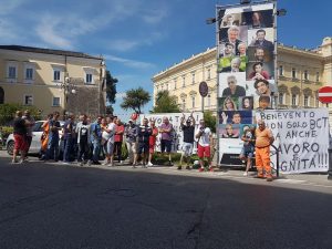 Nuova protesta degli interinali Asia di Benevento. Dopo la denuncia di domenica mattina dove alcuni lavoratori sono giunti sull’ecopunto 3 Epitaffio, di raccolta dei rifiuti non prelevati dall’azienda, oggi nel cuore pulsante della città piazza Castello striscioni e megafoni contro l’amministrazione Mastella, rea, secondo i lavoratori di aver accantonato la loro delicata vertenza. “Benevento, non solo Bct, ma anche lavoro e dignità”, la scritta di uno degli striscioni posti sotto la Provincia di Benevento e dinanzi il ricco cartellone di appuntamenti che vedrà la presenza in città a luglio di tanti big del cinema e dello spettacolo. E l’appello dei lavoratori va proprio al sindaco della città Clemente Mastella.