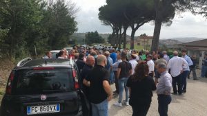 Cittadini in strada per chiedere maggiore contezza della situazione che si sta vivendo all’interno dello stir di Casalduni dove i focolai, retaggio del grande incendio dello scorso 23 agosto, sono ancora accesi.