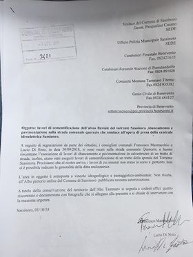 “Il Sannio non è terra di conquista,tutelare e custodire un bene collettivo, dal valore inestimabile, come il nostro territorio, per saperlo tramandare alla future generazioni resta una priorità inderogabile .Non è sempre facile.Da parte nostra l’impegno messo in campo ,per quanto di nostra competenza ,cerca di non deludere i cittadini ma soprattutto il territorio.Come promesso in campagna elettorale,nella forma più trasparente stiamo cercando di informare la cittadinanza sul lavoro che portiamo avanti. Nel frattempo poche settimane addietro il consiglio comunale vota a favore per l’adesione al parco del Matese ,ma nel territorio dell’Alto Tammaro continuano ad accadere cose strane. A seguito di segnalazioni da parte dei cittadini,i consiglieri comunali di minoranza comunali Di Sisto Lucio e Francesco Mastracchio si sono recati sulla strada comunale ” quercete “ che conduce all’opera di presa della centrale idroelettrica Sassinoro, riscontrando l’esecuzione di pavimentazione in calcestruzzo di un tratto di strada, inoltre ,erano stati eseguiti lavori di cementificazione di un tratto dell’alveo fluviale e della sponda del torrente Sassinora . Non essendo pubblicata nessuna autorizzazione sull’albo pretorio on Line del comune di Sassinoro ,trattandosi di una zona sottoposta a vincolo idrogeologico e paesaggistico-ambientale ,tempestivamente con propria nota abbiamo inoltrato la segnalazione agli organi competenti con documentazione fotografica .Si attendono risvolti.”