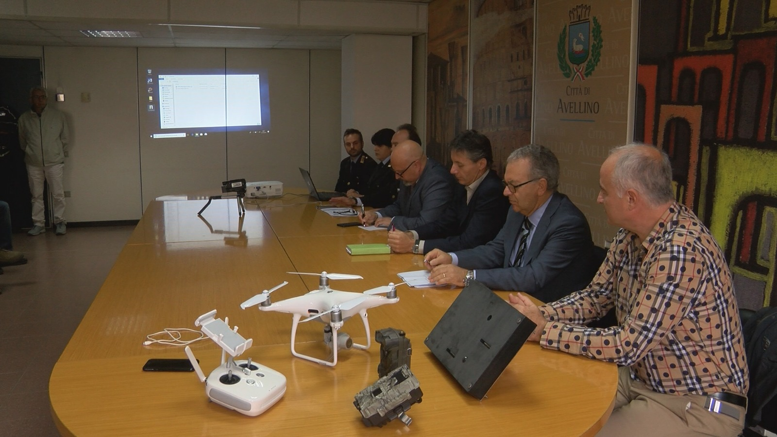 Alla conferenza stampa svolta a Palazzo di Città anche l’assessore all’Ambiente, Massimo Mingarelli, il comandante dei Vigili Urbani, Michele Arvonio, l’endocrinologo Amodio Botta e l’imprenditore Antonio Iannuzzi, che ha fornito gratuitamente i droni e il software di supporto all’amministrazione comunale.