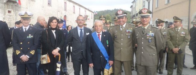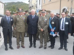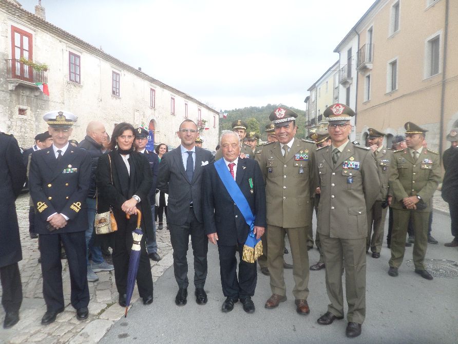 Si è svolta a Santa Croce del Sannio una maestosa cerimonia commemorativa nella giornata dedicata alle Forze Armate e ai caduti di tutte le guerre, promossa ed organizzata dalla Confederazione Nazionale Tra Associazioni Combattentistiche e d’Arma di Morcone, presieduta dal Cavalier Nicolino Lombardi, e dal Comune di Santa Croce del Sannio con il Sindaco Antonio Di Maria. Una cerimonia molto suggestiva e toccante, ove in questa giornata si è riflettuto sui valori di giustizia, libertà, pace, e convivenza tra i popoli. La manifestazione ha visto la partecipazione di diverse centinaia di persone. Tra le autorità civili, religiose, e militari, vi hanno partecipato: il Sindaco di Santa Croce del Sannio Antonio Di Maria, seguito da tutta l’amministrazione comunale, accompagnato dalla locale Polizia Municipale, e dal Gonfalone del Comune, il Sindaco di Pontelandolfo con il gonfalone del Comune,il Parroco di Santa Croce Don Domenico Curcio,l’Arcivescovo Metropolita di Benevento Monsignor Felice Accrocca, il Comandante della Stazione Carabinieri, il Questore della Polizia di Stato di Benevento Dott.Giuseppe Bellassai, l’Associazione Nazionale Combattenti Guerra di Liberazione Sezione Provinciale di Benevento,e Sezione di Arpaise (Bn) con il Presidente Michele Panaggio,il Vicepresidente Giovanni Russo e soci,il Dott. Vito Di Giorgio Viceprocuratore DDA del Tribunale di Messina, il Generale di Divisione Antonio Zambuco Capo di Stato Maggiore del Comando Logistico dell’Esercito Italiano, il Generale di Brigata Giuseppe Faraglia Comandante del Centro Addestramento Volontari 17esimo Reggimento “Acqui” di Capua (Ce), il Tenente Colonnello Raimondo Bove Vice Comandante Reggimento Centro Addestramento Volontari “Acqui” di Capua, il Generale di Brigata Pietro Barbera Comandante Polo Mantenimento Pesante dell’Esercito Italiano in Nola, l’Ammiraglio Livio Ceccobelli del Comando Logistico della Marina Militare, il Colonnello Vincenzo Lauro Comandante del Reggimento Italiano Nato, il Colonnello Antonio Di Matteo Comandante dei Corsi dell’Accademia Aeronautica Militare di Pozzuoli, il Colonnello Giuseppe Schiariti Comandante del 21esimo Reggimento Genio Guastatori, il Colonnello Enrico Rinaldi, il Comandante di Battaglione della Divisione “Acqui” di Capua Colonnello Michele Petrone, il Colonnello Giuseppe Di Monica, il Colonnello Andrea Sibilio del Comando Centro Documentale dell’Esercito, il Generale di Divisione Ermanno Meluccio, il Generale degli Alpini Luigi Epifanio, e tantissimi altri ufficiali di Varie Armi. La cerimonia si è svolta dapprima con la sfilata della Fanfara del Gruppo Alpini Molise, seguita dalla sfilata della Banda Musicale della Scuola Trasporti e Materiali dell’Esercito Italiano lungo il Corso Giuseppe Maria Galanti; a seguire presso la Chiesa Madre è stata celebrata la Santa Messa officiata dall’Arcivescovo Metropolita di Benevento, Monsignor Felice Accrocca, e concelebrata dal Parroco di Santa Croce Don Domenico Curcio, dal Cappellano Militare del Comando Provinciale dei Carabinieri di Benevento Don Francesco Marotta. Al termine della santa Messa si è proceduto con il corteo sino al monumento ai Caduti, dove lì hanno fatto il loro ingresso sul luogo della cerimonia il picchetto in armi, la Banda Scuola Trasporti e Materiali di Roma, le scolaresche, le autorità intervenute,ed i labari delle associazioni combattentistiche e d’arma, il gonfalone del comune di Santa Croce del Sannio, e si sono resi gli onori ai Caduti con la Cerimonia dell’Alzabandiera, la deposizione della Corona d’alloro, la preghiera per i caduti di tutte le guerre, e dovute allocuzioni del Sindaco, del Cavalier Nicolino Lombardi Presidente della Confederazione, del Generale Antonio Zambuco. Nei vari discorsi delle Autorità Civili e Militari si è ricordato di quanti hanno versato il proprio sangue per la difesa della Patria, delle sacre leggi, e delle libere istituzioni. “Che questa giornata si di ricordo e sprono anche ai giovani affinché divulgano sempre i valori della pace, della concordia tra i popoli. I presenti hanno ringraziato il Presidente Lombardi, ed il Sindaco di Maria per aver organizzato una cerimonia così maestosa, importante, bella e significativa, sentita,ricca di passione di chi l’ha organizzata, e così partecipata da tutti i presenti e dalla cittadinanza locale tutta.