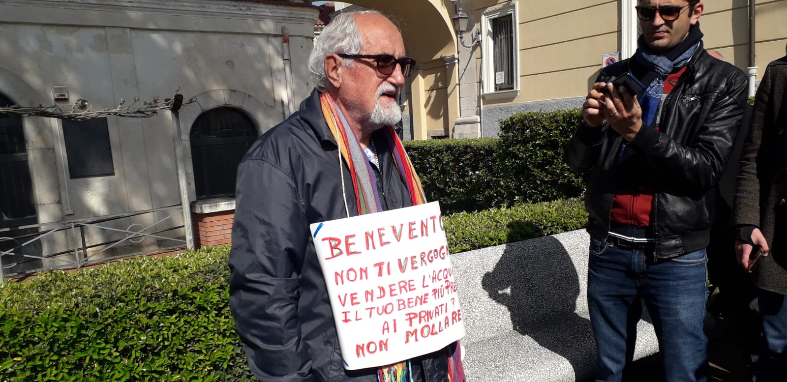 Un consiglio comunale movimentato quello che si è svolto al comune di Benevento. Nella giornata mondiale dell’acqua hanno fatto snetire la loro voce dinanzi le porte di Palazzo Mosti il comitato acqua bene comune nella persona di Giovanni Seneca presidente del Comitato Sannita Acqua Bene Comune e Padre Alex Zanotelli. L’assise comunale è stata chiamata a discutere due punti all’ordine del giorno relativi proprio alla gestione del servizio idrico nel territorio sannita che potrà diventare privata. E con lo slogan “Ca nisciun è fess” il comitato acqua e Altrabenevento che da sempre si battono per la questione acqua e la vicenda del tetracloroetilene finora”ignorata” dagli amministratori locali, hanno lanciato chiari messaggi ai politici. Padre Zanotelli su tutti: svendere l’acqua è una vergogna, ora è tutto business.