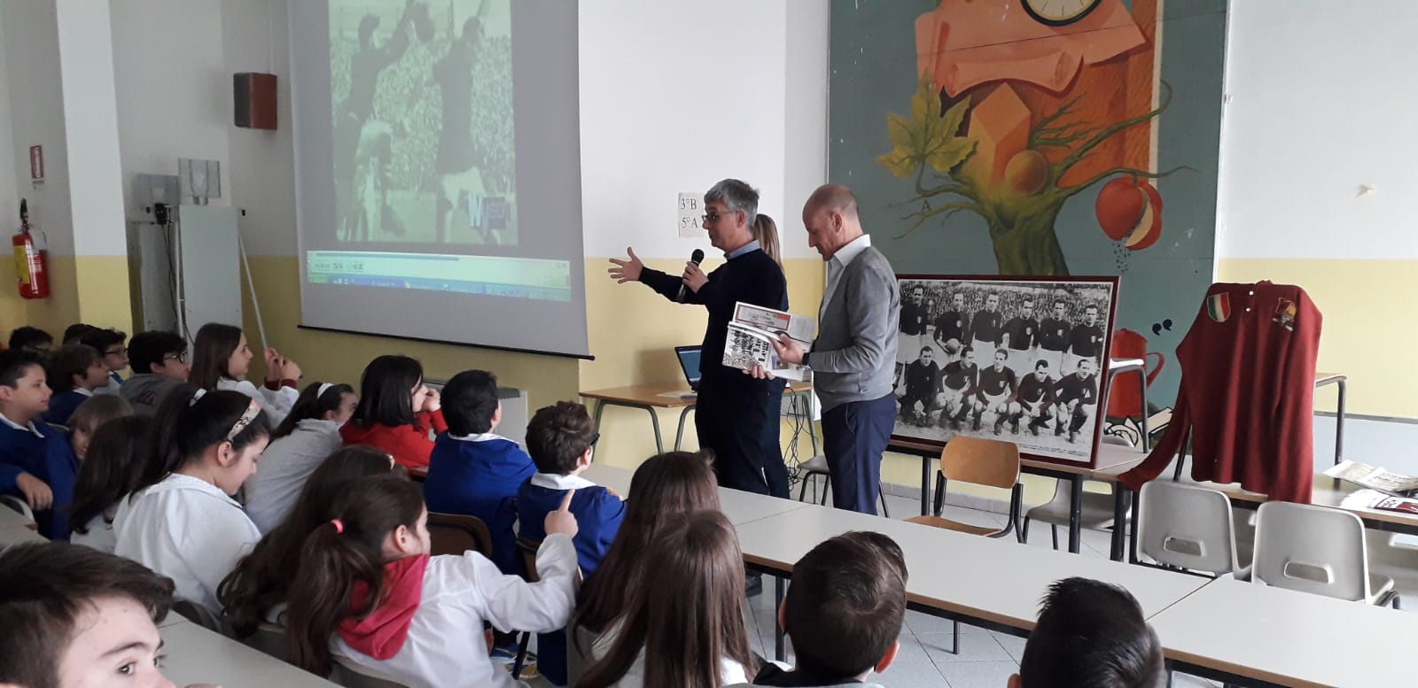 Una delegazione del club guidata dal presidente Daniele Capossela ha incontarto gli studenti della scuola primaria di primo grado dell’Istituto comprensivo S. Angelo a Sasso di Benevento a partire dalle ore 9. Nell’occasione è stato presentato ai piccoli un filmato storico e rievocativo sulle gesta del Grande Torino, per poi sviluppare con loro e i loro insegnanti, un dialogo sui valori forti che quella squadra ha rappresentato per l’Italia dell’epoca, appena uscita da una guerra distruttiva e tragica, e tutt’ora rappresenta. Una squadra quella capitanata da Valentino Mazzola, che ha incarnato valori di unità, di rinascita, di bellezza che ancora oggi vivono nella memoria di chi all’epoca era bambino, e che a 70 anni di distanza, rappresentano ancora l’essenza vera dello sport.