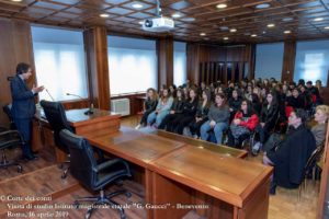 Le classi terze del Liceo economico sociale del Guacci di Benevento, accompagnate dalle docenti Laura Bonaiuto, Patrizia Borzillo, Simonetta Maio e Luigina Vallana, hanno partecipato ad un’esperienza formativa presso la Corte dei Conti di Roma a suggello di un percorso di alternanza scuola-lavoro con profilo giuridico-forense.