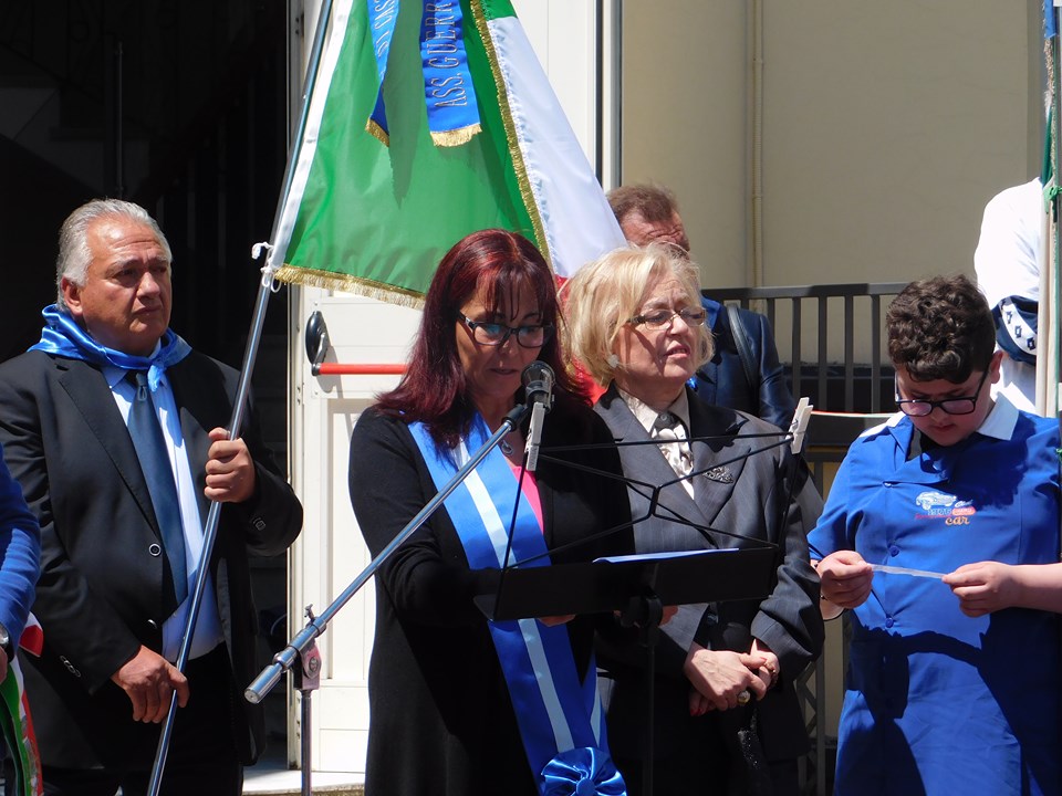 Il 2 Giugno si celebra il 73esimo anniversario della festa della Repubblica Italiana. Come ogni città o paese dell’intera nazione,anche il Comune,la Parrocchia,e l’Associazione Guerra di Liberazione Sezione di Castelvetere ,e l’Associazione S.o.f.i.a Onlus di Napoli,hanno voluto organizzare nella su citata Castelvetere in Valfortore questa giornata. L’odierna cerimonia è iniziata presso la Piazza Dante con il Raduno dei partecipanti,alla presenza del Sindaco Gianfranco Mottola con l’intera amministrazione,del Parroco Don Armando Valeriano,dei Carabinieri di San Bartolomeo in Galdo con il Maresciallo Altieri Maurizio,del Presidente dell’Associazione Guerra di Liberazione Sezione di Castelvetere Maria Forte con numerosi soci,del Presidente dell’Associazione S.o.f.i.a Onlus Sofia Bianco,e dell’interà comunità. Dalla Piazza ci si è recati in corteo verso la Chiesa San Nicola Vescovo,per la Celebrazione della Santa Messa officiata dal Parroco Don Armando Valeriano, e al termine proseguendo in corteo sino alla piazza Dante,dove si è svolta la Cerimonia commemorativa. Di qui il saluto del Sindaco agli intervenuti,che ha ringraziato i presenti e lodato l’iniziativa utile per far emergere nei piccoli,e nei giovani quel senso di pace,richiamando i valori del vivere civico,del rispetto e della legalità,quel senso della vera repubblica,e reso un plauso all’Associazione Guerra di Liberazione che insieme al Comune stesso,invitando l’Associazione S.o.f.i.a Onlus che si occupa di famiglie in difficoltà,di disagi sociali dei bambini con storie familiari difficili; hanno coinvolto i bambini delle scuole materne ed elementari,che hanno cantato l’Inno Nazionale,recitato delle bellissime poesie,e promulgato delle toccanti frasi attinenti alla Repubblica;a quella Repubblica fatta di ideali,di idee comuni,dei valori importanti per il vivere quotidiano. Dopo l’intervento dei bambini,è intervenuta la Presidente dell’Associazione Guerra di Liberazione Sezione di Castelvetere,che ha illustrato la sua Associazione,spiegando il monito della stessa,e ha salutato tutti gli intervenuti ringraziando il Sindaco e l’Associazione Sofia Onlus,per aver collaborato con lei alla realizzazione di tale giornata importante per la memoria di quei caduti durante la guerra,e internati nei campi nazisti,che hanno versato il proprio sangue per il bene dell’Italia,per la costruzione del nostro futuro,e la costituzione della Repubblica. Inoltre poi è intervenuta la Presidente dell’Associazione S.o.f.i.a. Onlus (Sostegno Operativo Famiglie Italiane Disagiate), che ha illustrato la sua associazione che si occupa del sostegno alle famiglie italiane in difficoltà, dei bambini disagiati con problemi familiari difficili, e reso grazie agli organizzatori,onorata di essere stata invitata a tale momento,omaggiando i bambini con alcuni giocattoli.