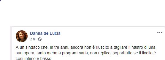 A un sindaco che, in tre anni, ancora non è riuscito a tagliare il nastro di una sua opera, tanto meno a programmarla, non replico, soprattutto se il livello è così infimo e basso.