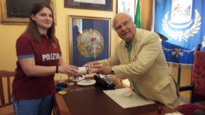 San Giorgio del Sannio omaggia Maria Varricchio, la giovane tiratrice sannita che si è contraddista all’Universiade di Napoli con la medaglia di bronzo nella gara a squadre mista di tiro a segno specialità pistola 10 metri.Non solo Universiade, Maria negli ultimi giorni ha conquistato a Suhl (Germania) durante la Coppa del Mondo Juniores, la medaglia d’oro nella gara a squadre pistola. Stamane al Municipio la consegna del riconoscimento da parte del suo comune natìo San Giorgio del Sannio nella persona del primo cittadino Mario Pepe. Maria si dice soddifatta dell’ulteriore premio ricevuto nella sua cittadina.