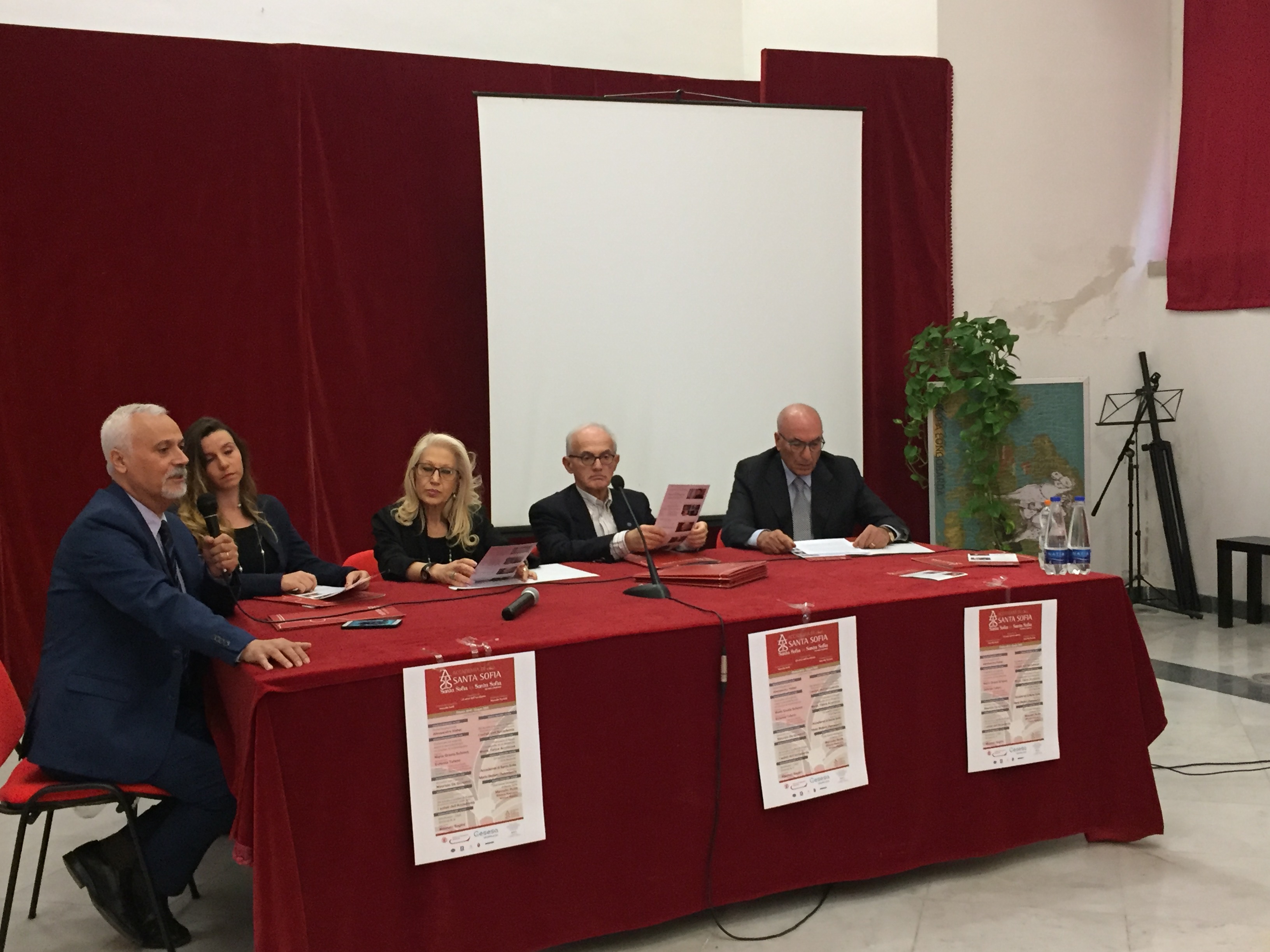 E’ cominciata con un applauso, ricordando Carlotta Nobile, la conferenza stampa di presentazione di “Santa Sofia in Santa Sofia”tenutasi presso l’Auditorium Santa Caterina di Palazzo Paolo V. Benevento si prepara così alla rassegna che usa il linguaggio universale della musica, che, giunta alla quarta edizione quest’anno presenta un cartellone intenso, ricco di nomi e personaggi importanti della cultura,della musica e del teatro. Ad aprire la Stagione sarà Alessandro Haber, atteso domenica 27 ottobre nella spettacolare cornice della Chiesa Di Santa Sofia, l’evento sarà preceduto alle ore 19.00 da una interessante conversazione storica a cura del Prof. Marcello Rotili. Si passa poi al 24 novembre con un tributo alla musica classica con Maria Grazia Schiavo. A pochi giorni dal Natale, il 22 dicembre sarà la volta dello scrittore Maurizio Di Giovanni e passando al nuovo anno il 12 gennaio si potrà assistere a le “Sei sonate a quattro di Rossini” con “I solisti dell’Accademia” precedute da “Le sei sonate orrende” a cura di Gioacchino Zarrelli ,che tornano anche per la serata di sabato 21 marzo. Il 23 febbraio protagonista il pianoforte di Maurizio Baglini, mentre il 17 aprile ci sarà un interessante incontro con Mons. Felice Accrocca su “Francesco D’Assisi l’autografia di un illetterato”.Domenica 17 marzo alle ore 20 apre la serata il prof. Marcello Rotili su “Cosiderazioni sulla mappa originale della città di Benevento” e poi a seguire il Quintetto D’Archi Accademia di Santa Sofia e Bandoneon di Mario Stefano Pietrodarchi.La rassegna chiude il 7 giugno con un incontro su “Una nuova immagine di Santa Sofia” a cura del prof Marcello Rotili, con Silvana Rapuano ed Enrico Babilio.Alla conferenza stampa sono intervenuti: Salvatore Palladino Presidente dell’Accademia di Santa Sofia,Giovanni Cardona Albini, Presidente onorario,Maria Bonaguro,Presidente degli “amici dell’Accademia”, Marcella Parziale,Direttore artistico e Marcello Rotili consulente scientifico.