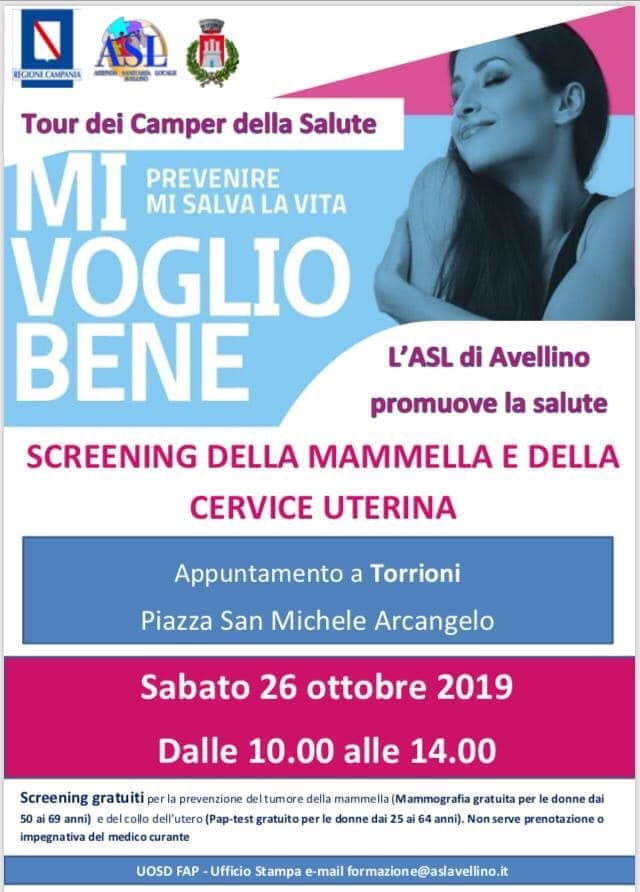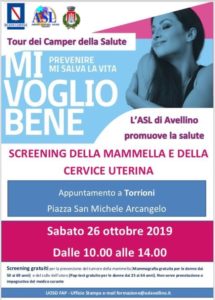 Continua nel mese di ottobre il tour del camper della salute promosso dall’Asl di Avellino per la prevenzione del tumore al seno e al collo dell’utero. Il calendario di eventi per lo screening della mammella e della cervice uterina toccherà, nel mese di ottobre, altri Comuni irpini dove sarà possibile effettuare screening gratuiti per la prevenzione del tumore della mammella, per le donne dai 50 ai 69 anni, del collo dell’utero per le donne dai 25 ai 64 anni). Il 26 ottobre a Torrioni – Piazza San Michele Arcangelo – dalle 10 alle 14.