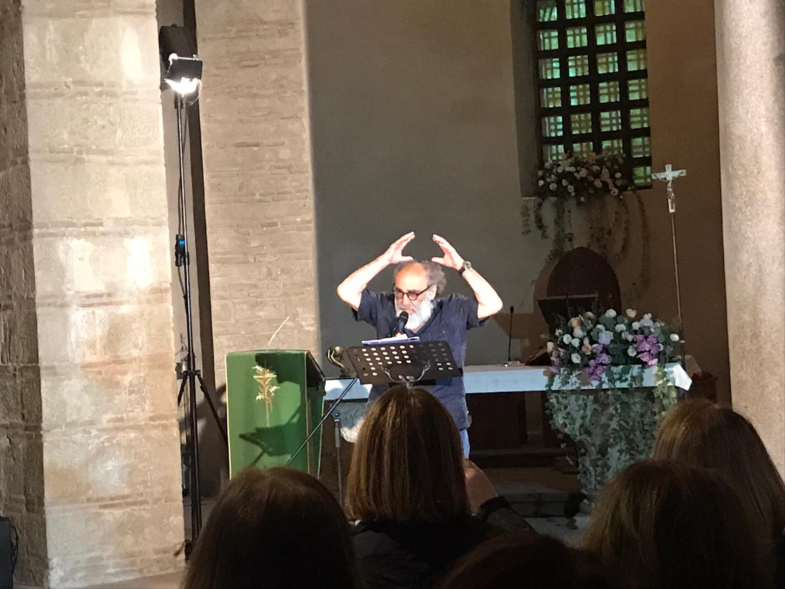 La Quarta Edizione di “Santa Sofia in Santa Sofia”, parte in grande stile con la poesia. La rassegna di incontri culturali e musicali, finalizzata alla valorizzazione del Complesso Monumentale di Santa Sofia è partita ieri sera con Alessandro Haber, l’attore reduce dal recente debutto televisivo nel successo di Rai 2 “Maledetti Amici Miei” ha incantato il pubblico,con la performance “Haberleggepoesie”. La sua voce e il suo temperamento vibrante e dolce insieme, hanno dato forma alle parole di Leopardi, Neruda,Prevert,Bukowski, fino a testi meravigliosi dei contemporanei Ivano Fossati e Vitaliano Trevisan. Una serata emozionante, quella organizzata dall’ “Accademia di Santa Sofia”sotto la direzione artistica di Marcella Parziale, che ha visto dapprima una interessantissima “Conversazione Storica”, “da port’aurea al largo di pontile”, a cura dell’archeologo Marcello Rotili.La rassegna proseguirà fino a giugno 2020 con appuntamenti mensili sempre di grande valenza culturale e artistica.