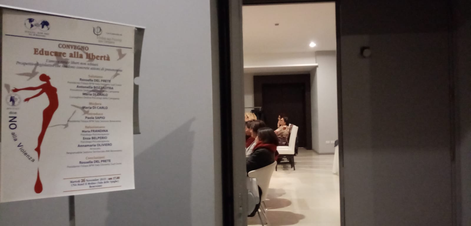 “Educare la società a vivere civilmente senza nessun tipo di violenza”, questo uno dei tanti messaggi chiave del convegno “Educare alla libertà” evento organizzato dalla FIDAPA – BPW Italy sezione di Benevento in collaborazione con l’Ordine degli psicologi della Campania svoltosi nella Sala delle Spighe dell’Una Hotel Il Molino All’incontro con il sottotitolo “L’amore rende liberi non schiavi. Prospettive legislative che rendono concrete azioni di prevenzione”, la Fidapa ha voluto sottolineare l’impegno che da sempre ha a cuore quello a della violenza di genere parlando di prevenzione e rispetto reciproco nella società civile.Paola Sapio neo Presidente della Federazione Italiana Donne Arti Professioni e Affari di Benevento