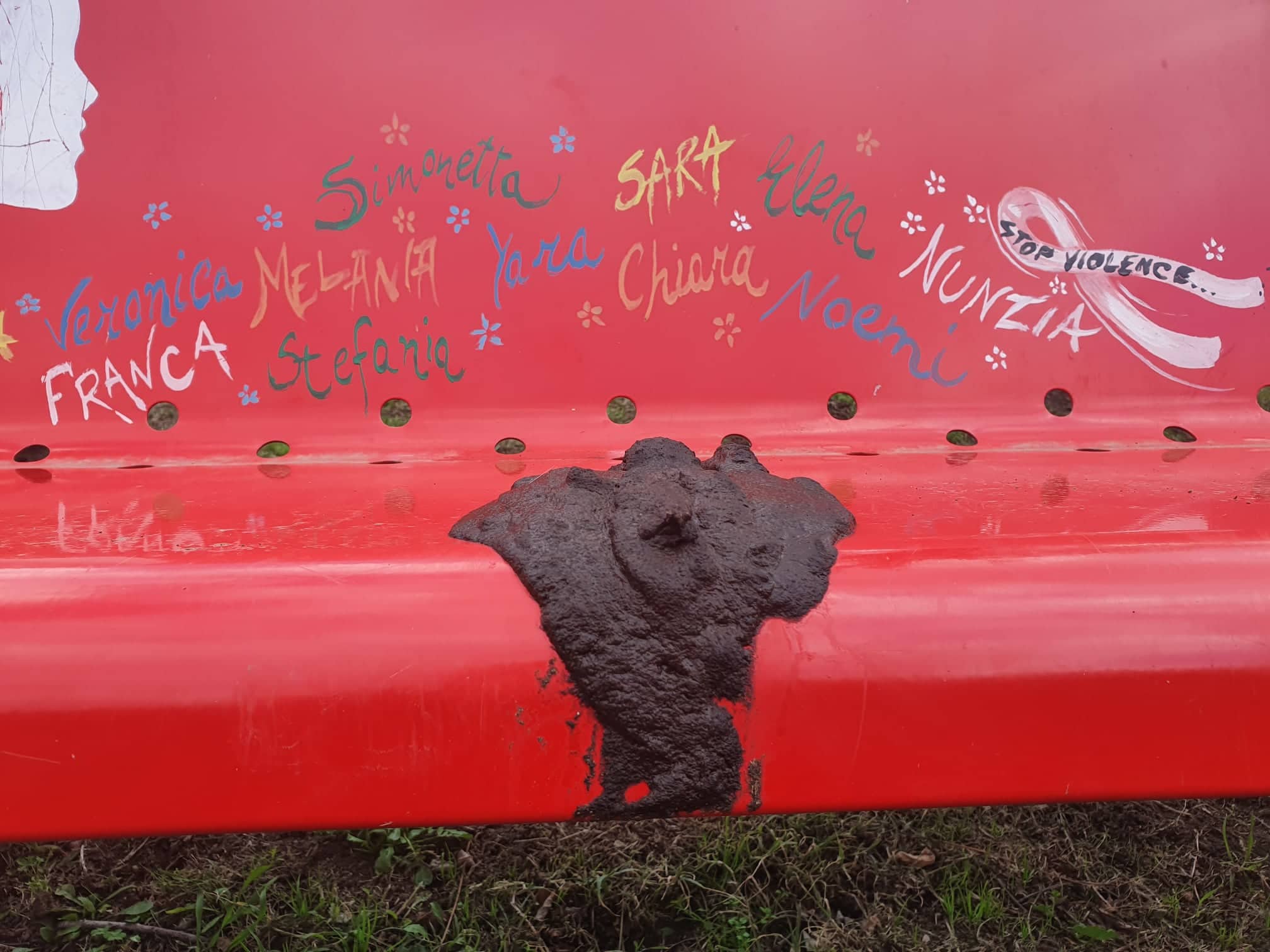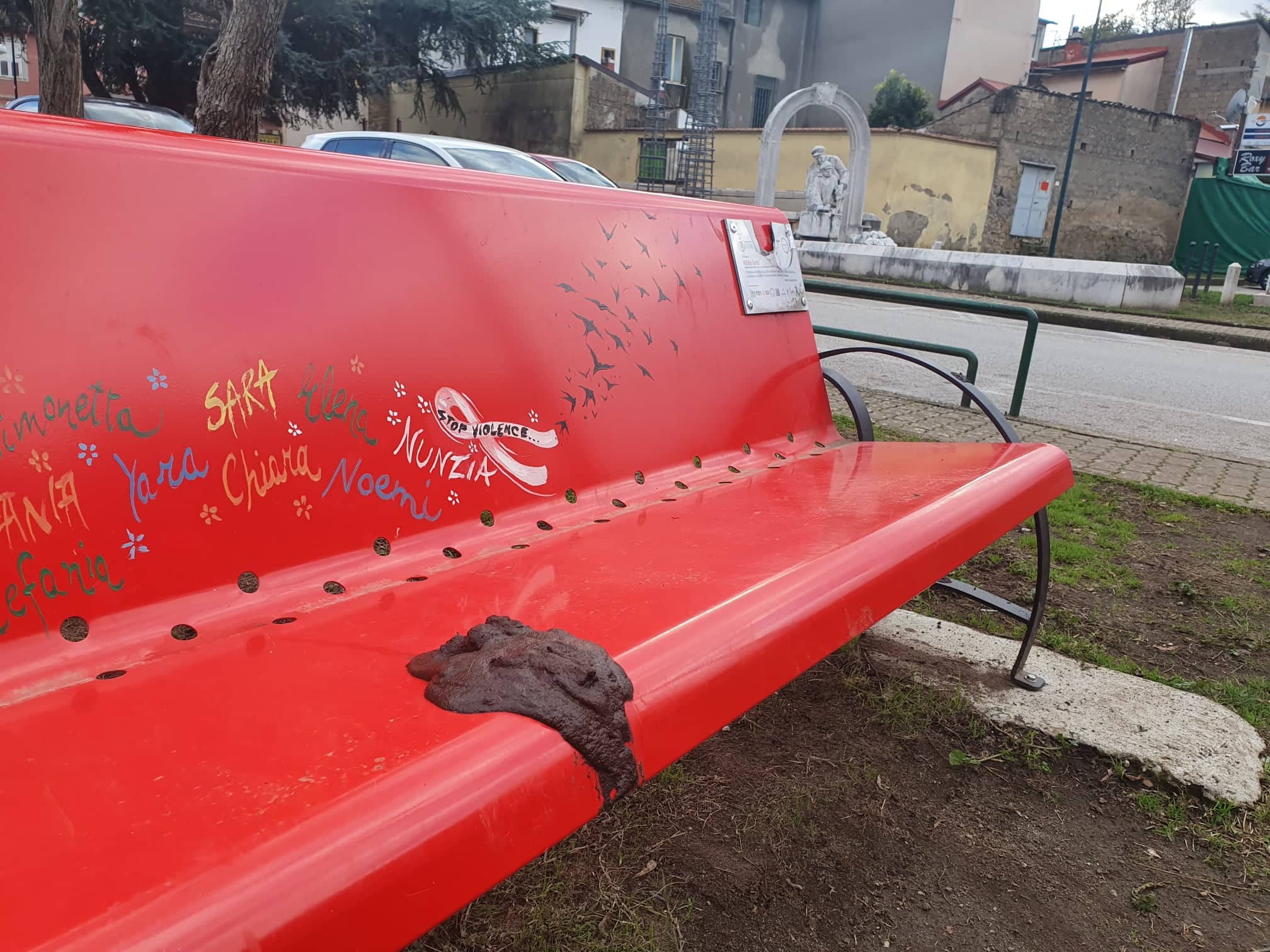 “Con enorme dispiacere e rabbia prendo atto che per la terza volta, in un anno, la “Panchina Rossa contro la violenza di genere” è stata deturpata.