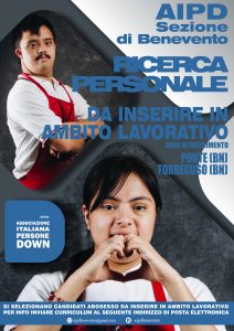 L’Associazione Italiana Persone Down Sezione di Benevento, ricerca personale ambosesso da inserire in percorsi formativi e successivo inserimento nel mondo del lavoro esclusivamente per le zone di “PONTE (BN) o TORRECUSO (BN)”.Il candidato dovrà avere, oltre ad un cromosoma in più, età compresa tra i 18 e i 31 anni.